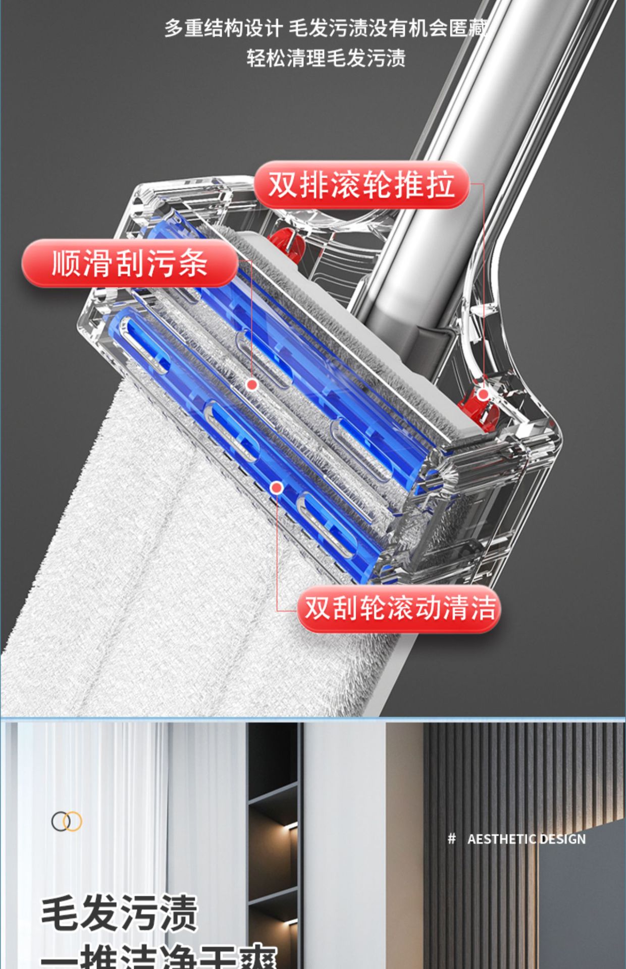 핸즈프리 평면 걸레 2024 새로운 스타일의 가정용 게으른 사람들을 위한 습식 및 건식 이중 용도 나무 바닥 천으로 걸레질
