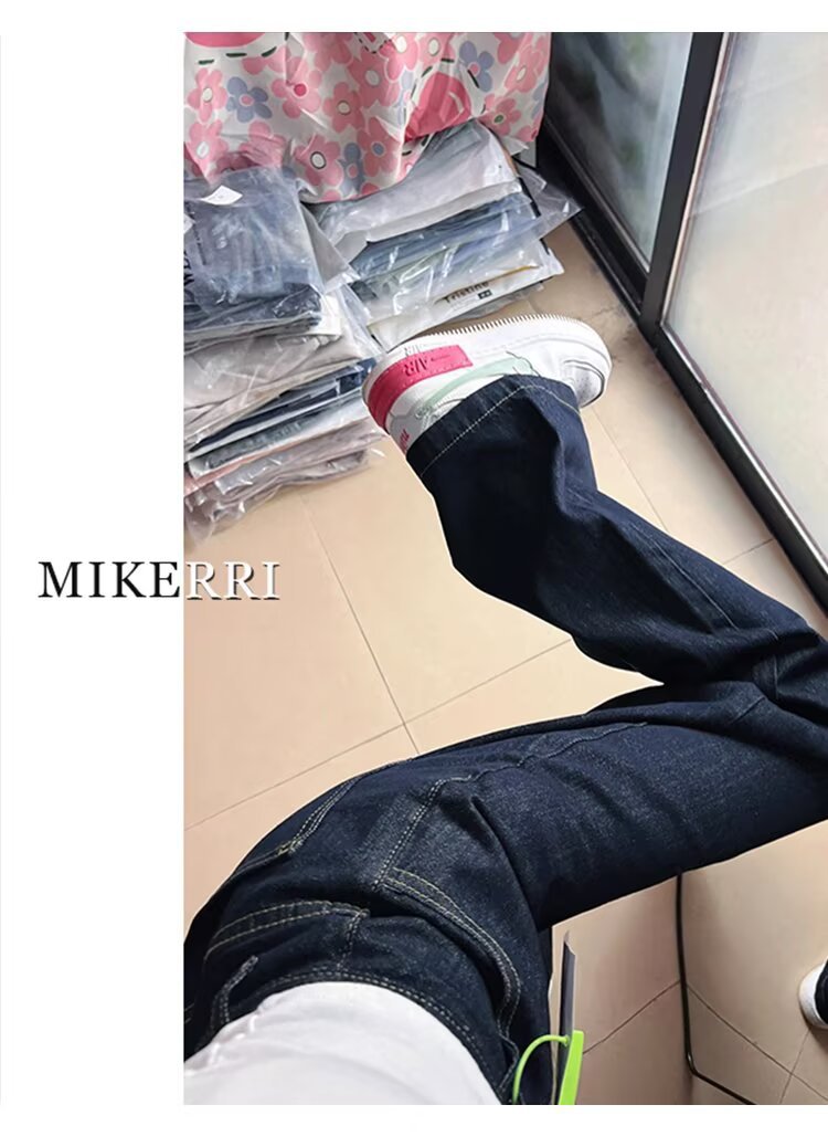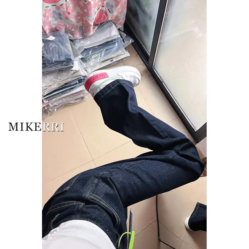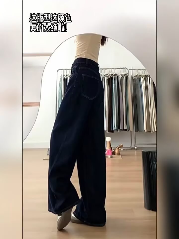다크 블루 버전 큰 넓은 다리 청바지 여성의 봄 새로운 높은 허리 느슨한 고기 커버 슬리밍 스트레이트 다리 바지스토어 가기