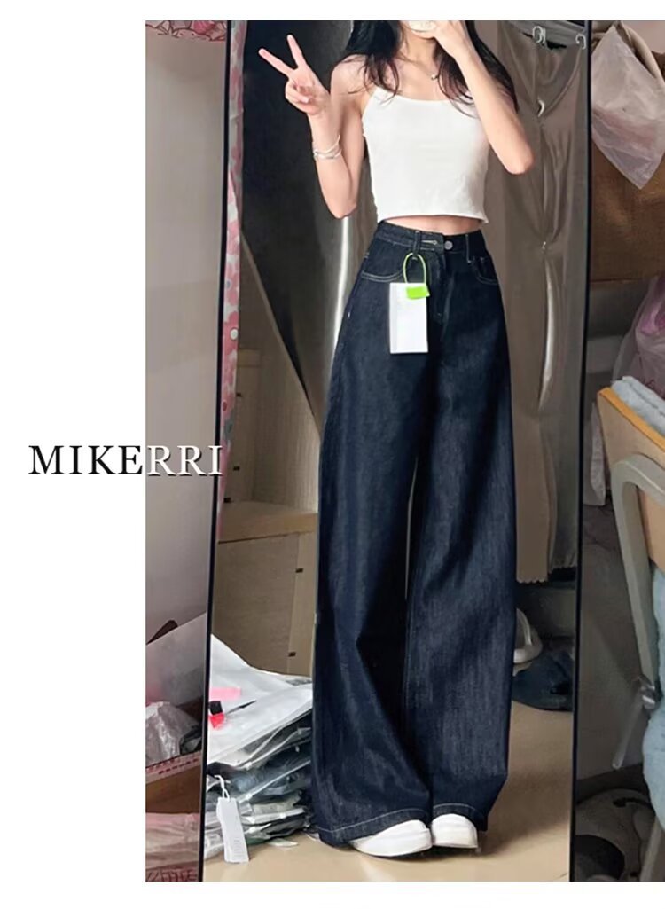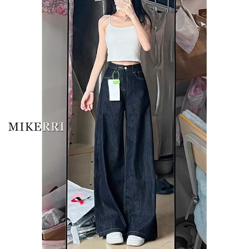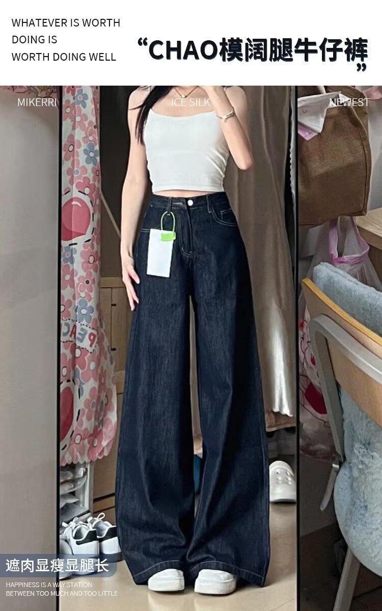 다크 블루 버전 큰 넓은 다리 청바지 여성의 봄 새로운 높은 허리 느슨한 고기 커버 슬리밍 스트레이트 다리 바지