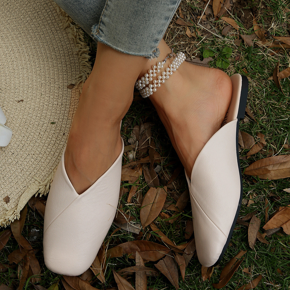 여성용 슬리퍼 2025 여름 신작 플랫 바닥 Baotou 한국식 하프 슬리퍼 여성용 게으른 복고풍 다용도 겉옷 대형 신발스토어 가기