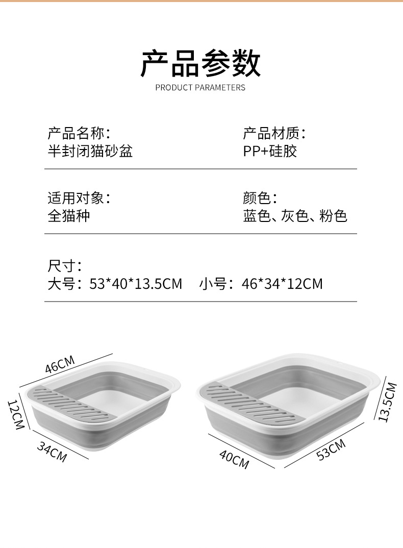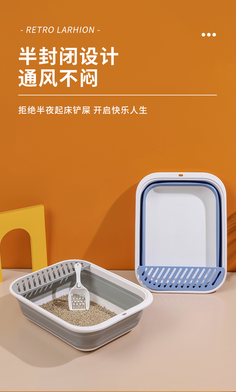 새로운 애완 동물 쓰레기 상자 반 폐쇄 접이식 고양이 화장실 대형 안티 스플래시 청소 고양이 용품 도매