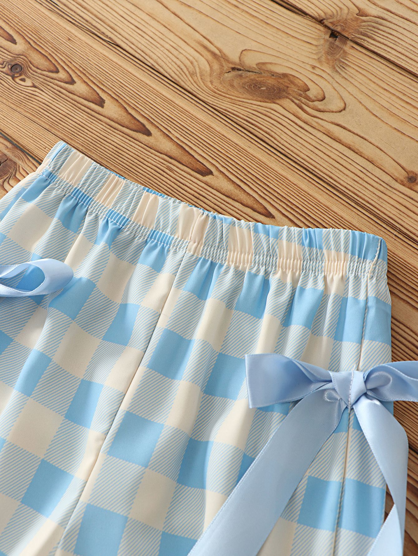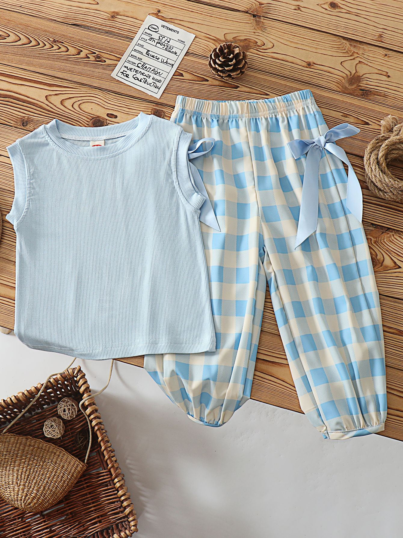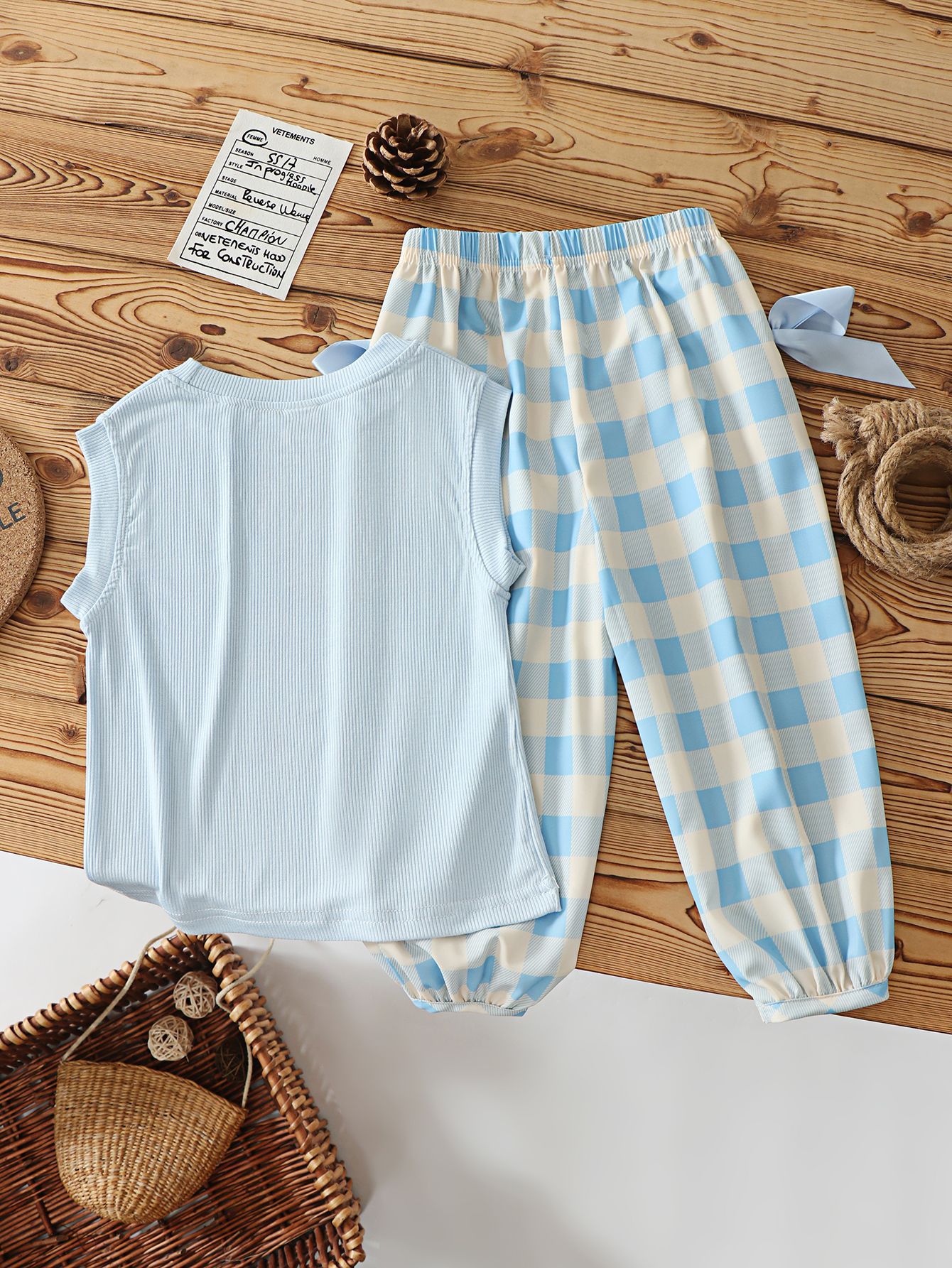 여자 여름 정장 2025 새로운 스타일 여자 스포츠 어린이 민소매 격자 무늬 조끼 투피스 세트