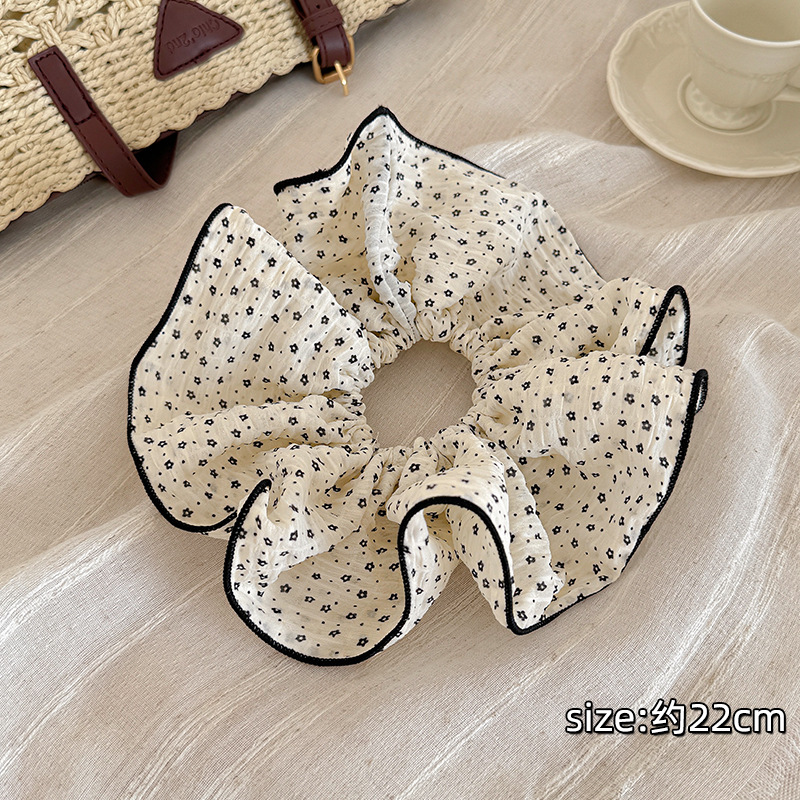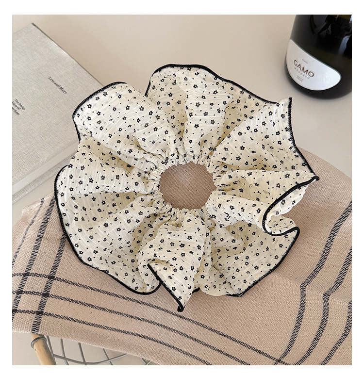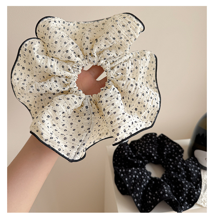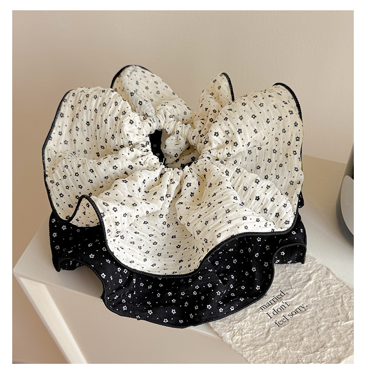 프랑스 스타일 흑백 꽃 도트 대형 내장 헤어 링 여성의 높은 스트레치 페이테일 헤어 스트랩 헤어 로프 헤어 액세서리