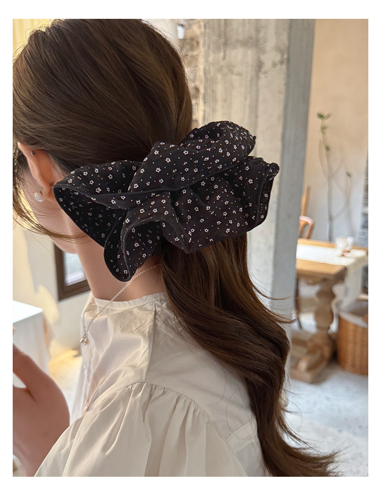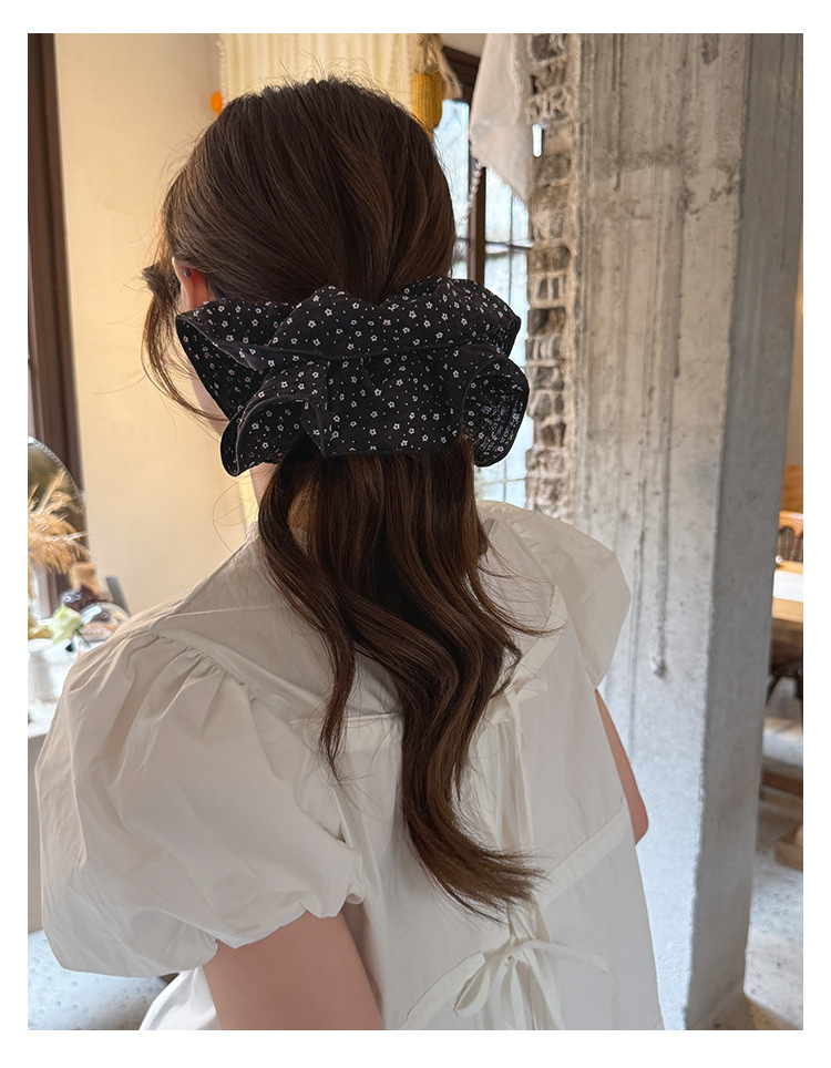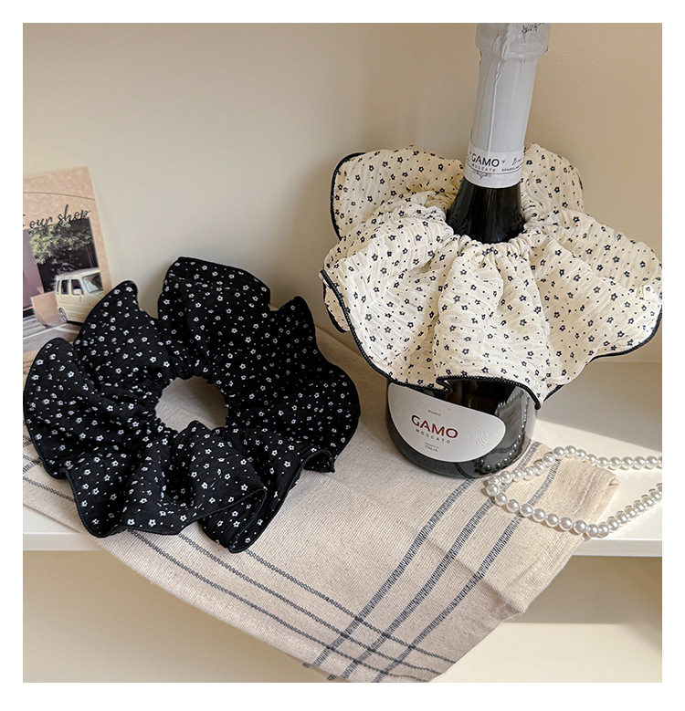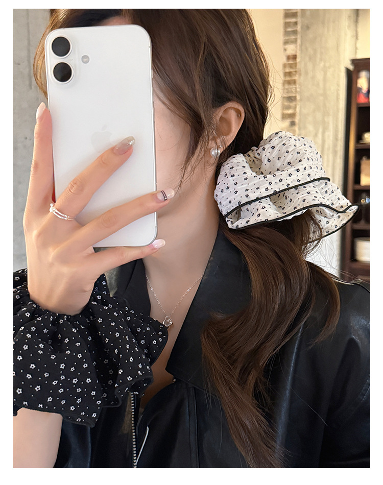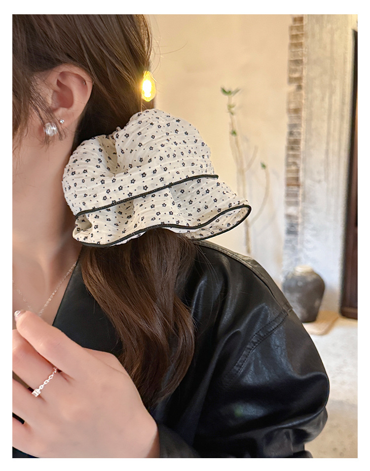 프랑스 스타일 흑백 꽃 도트 대형 내장 헤어 링 여성의 높은 스트레치 페이테일 헤어 스트랩 헤어 로프 헤어 액세서리스토어 가기