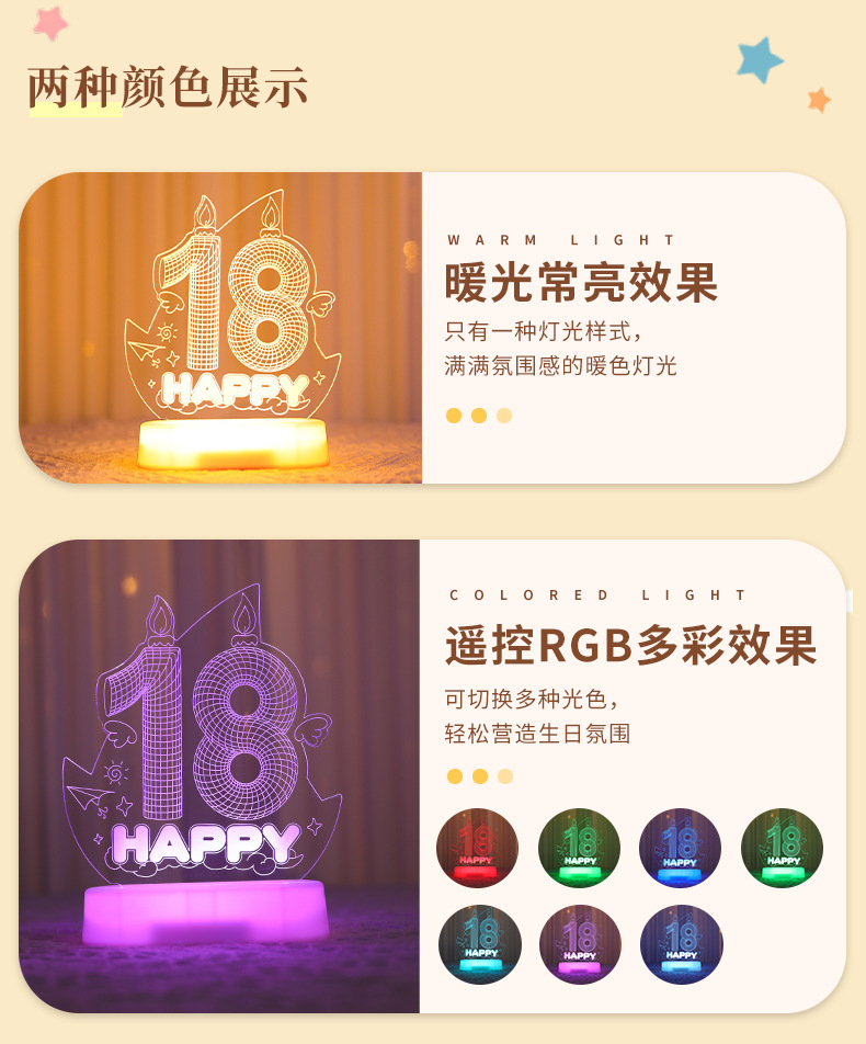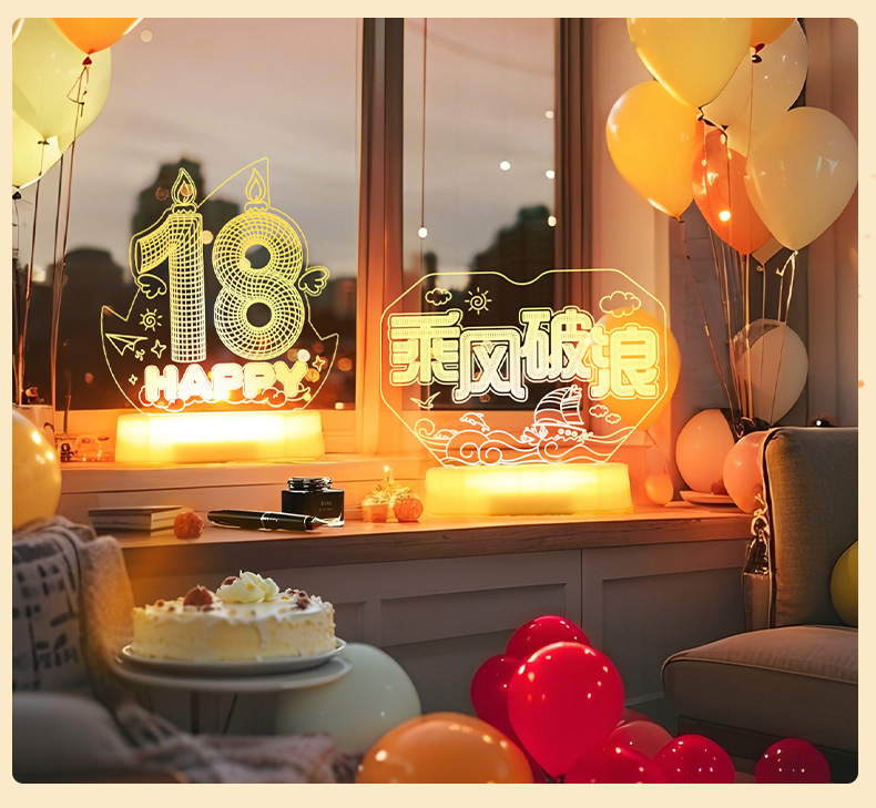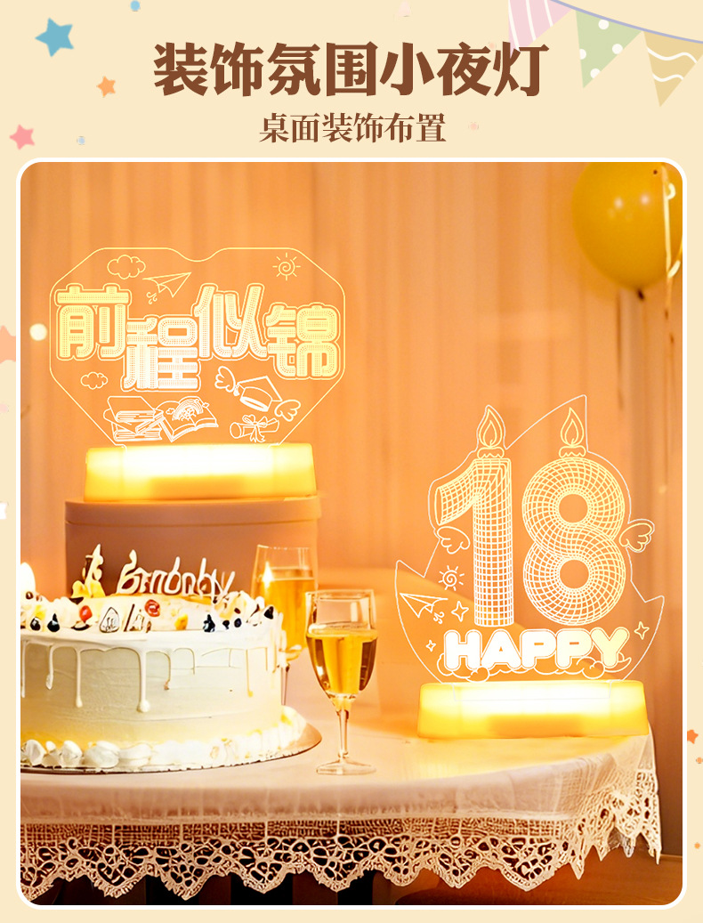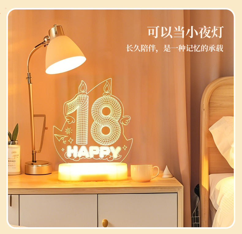 해피 18 번째 생일 빛나는 LED 문자 라이트 태그 장식품 실내 홈 데스크탑 장면 분위기 장식 소품스토어 가기