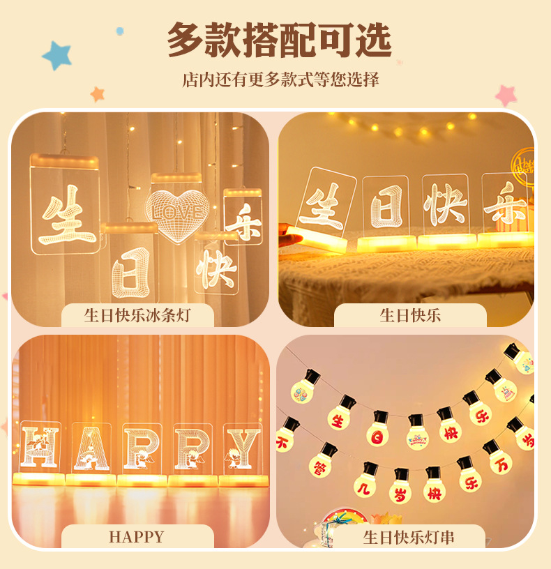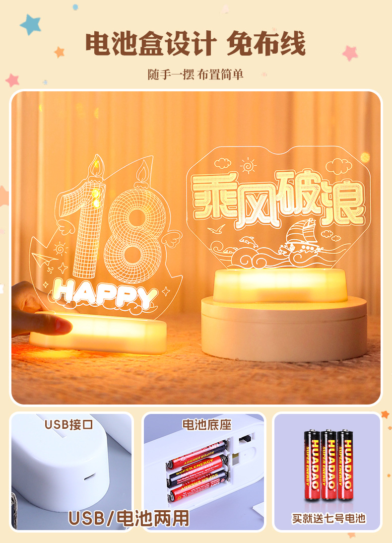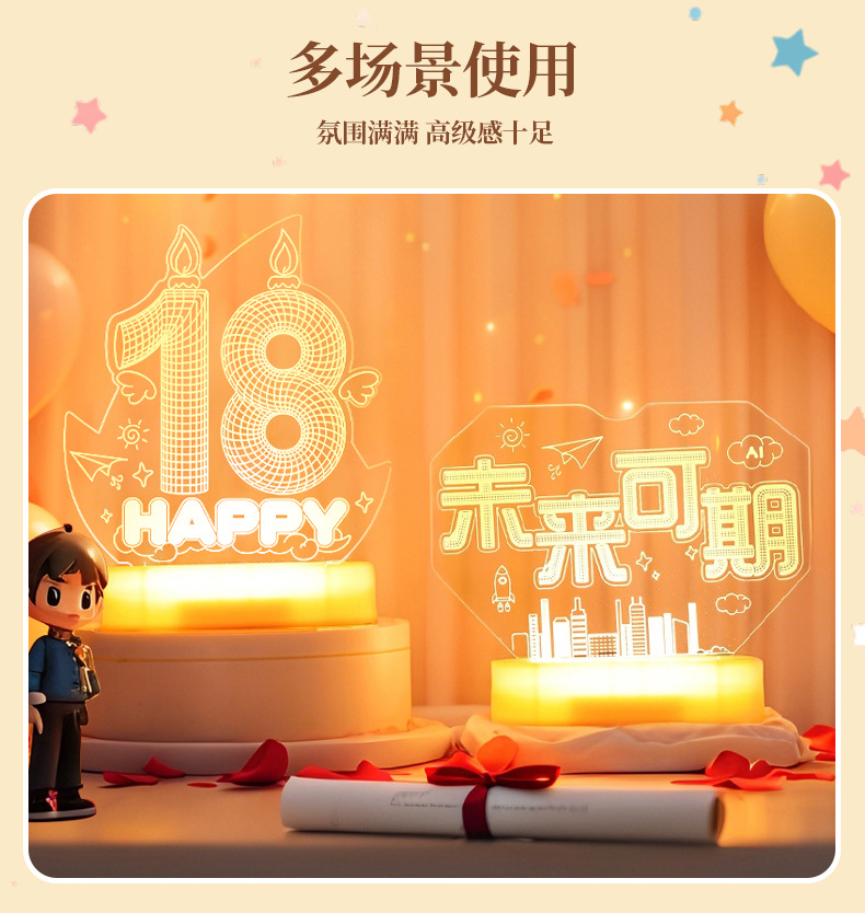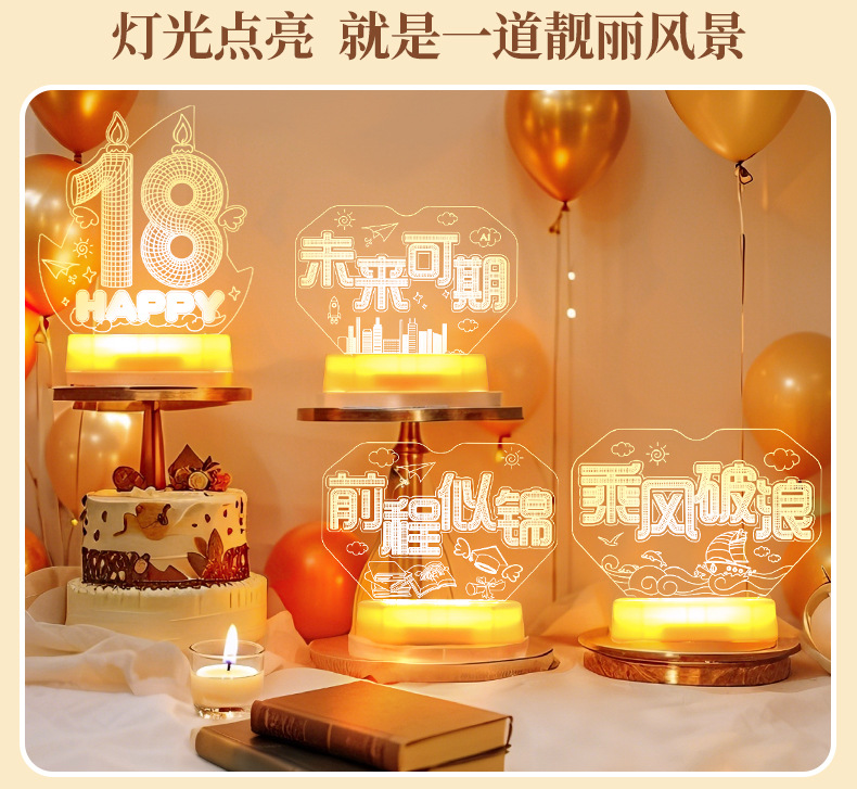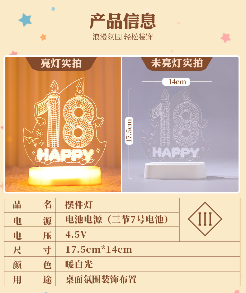 해피 18 번째 생일 빛나는 LED 문자 라이트 태그 장식품 실내 홈 데스크탑 장면 분위기 장식 소품스토어 가기
