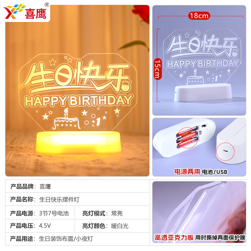 해피 18 번째 생일 빛나는 LED 문자 라이트 태그 장식품 실내 홈 데스크탑 장면 분위기 장식 소품