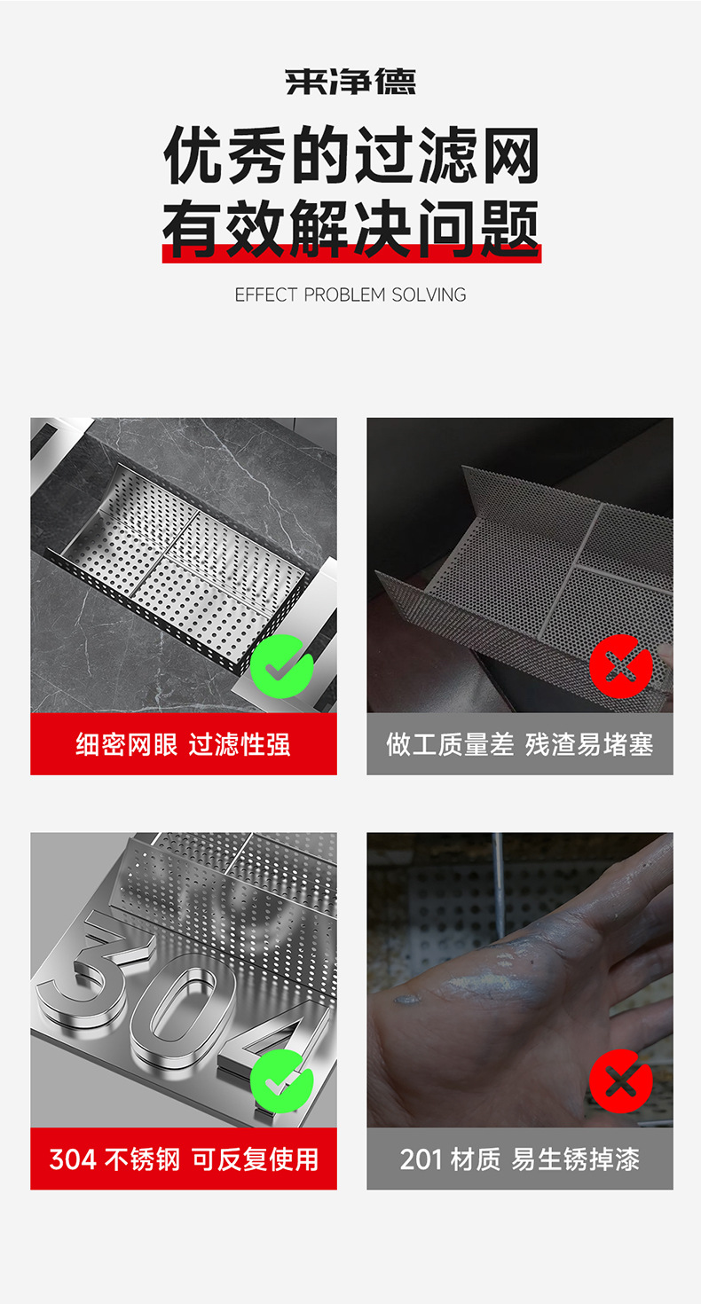 Laijingde 304 스테인레스 스틸 주방 슬래그 바구니 하수구 배수구 필터 메쉬 호텔 막힘 방지 싱크 메쉬