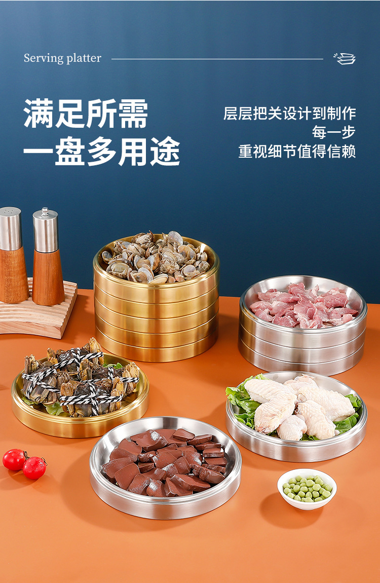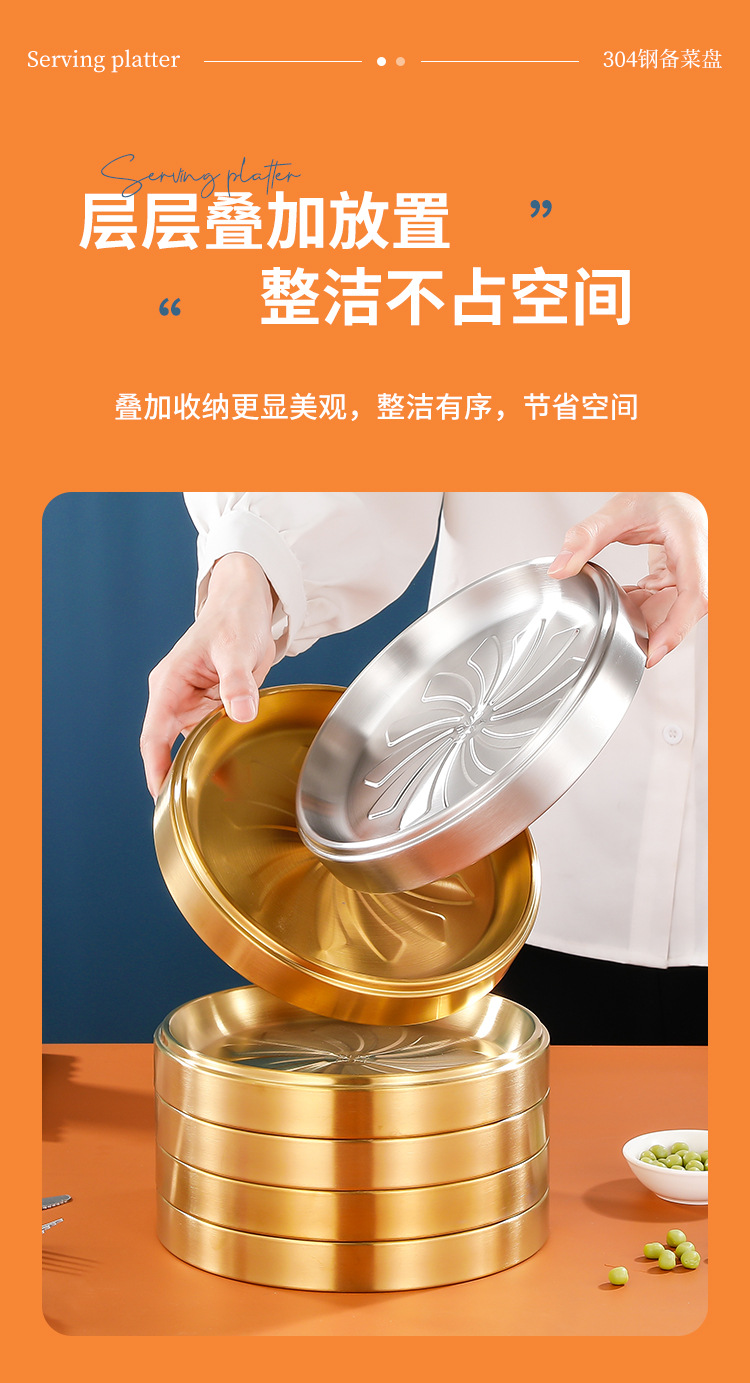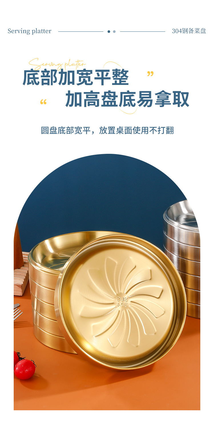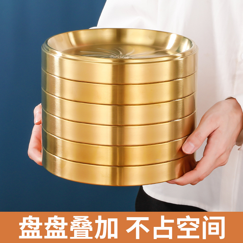 304 스테인레스 스틸 접시 준비 플레이트 다층 쌓을 수있는 식품 등급 접시 플레이트 상업용 바베큐 플레이트 둥근 황금 두께스토어 가기