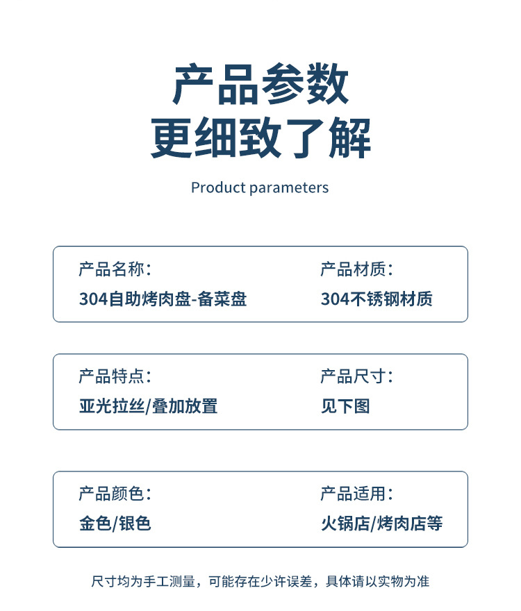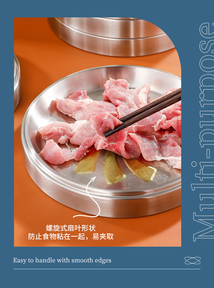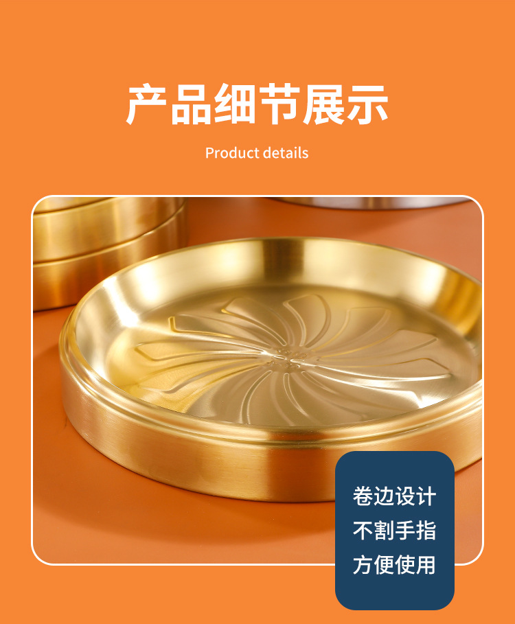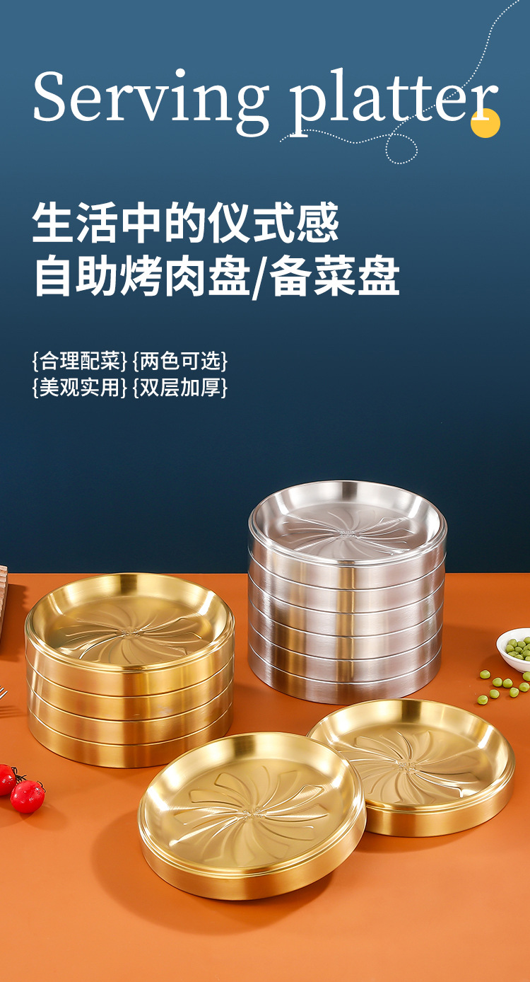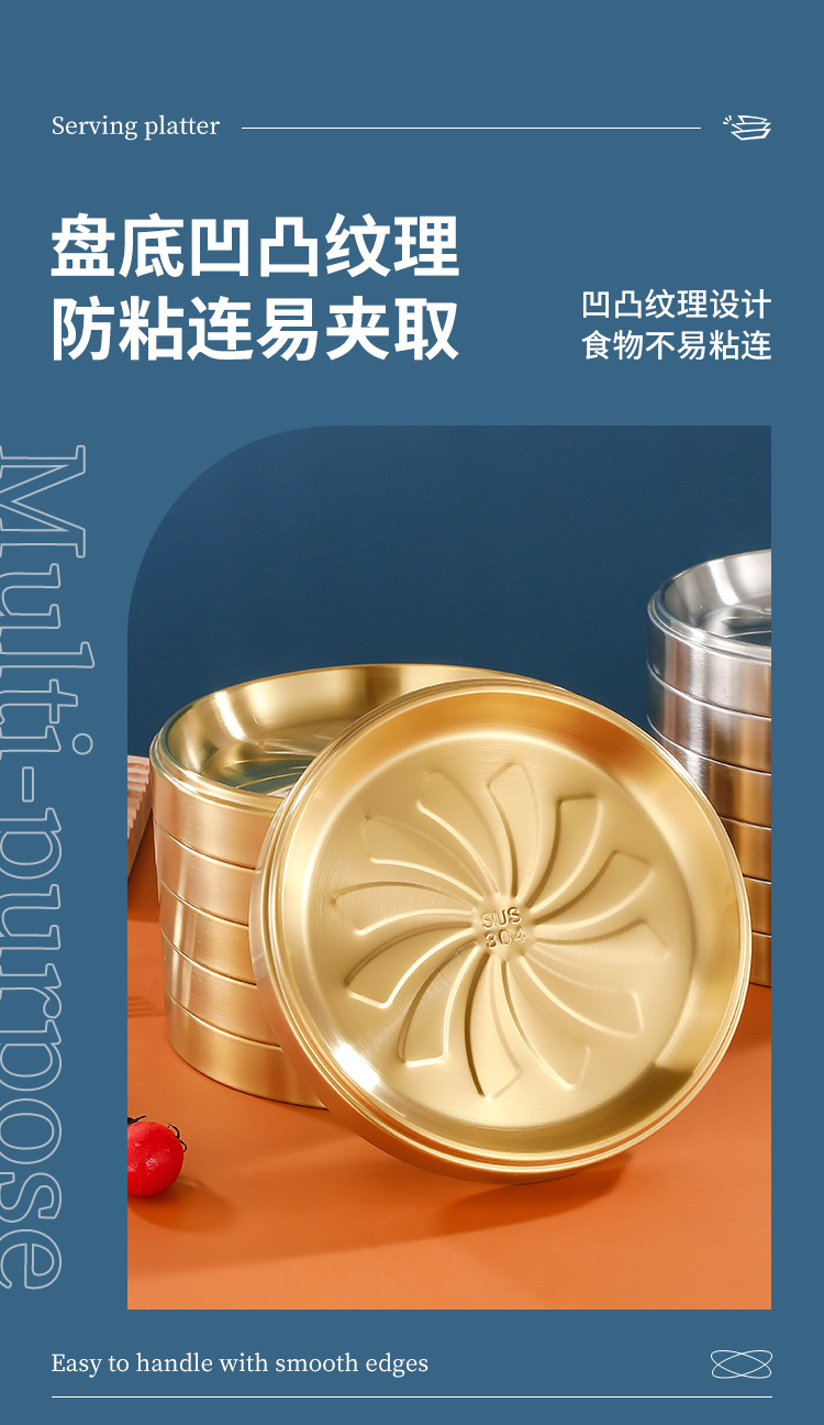 304 스테인레스 스틸 접시 준비 플레이트 다층 쌓을 수있는 식품 등급 접시 플레이트 상업용 바베큐 플레이트 둥근 황금 두께스토어 가기