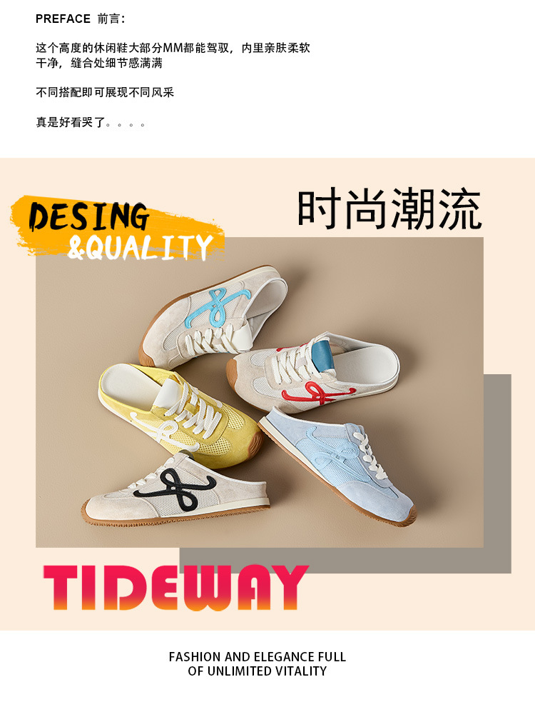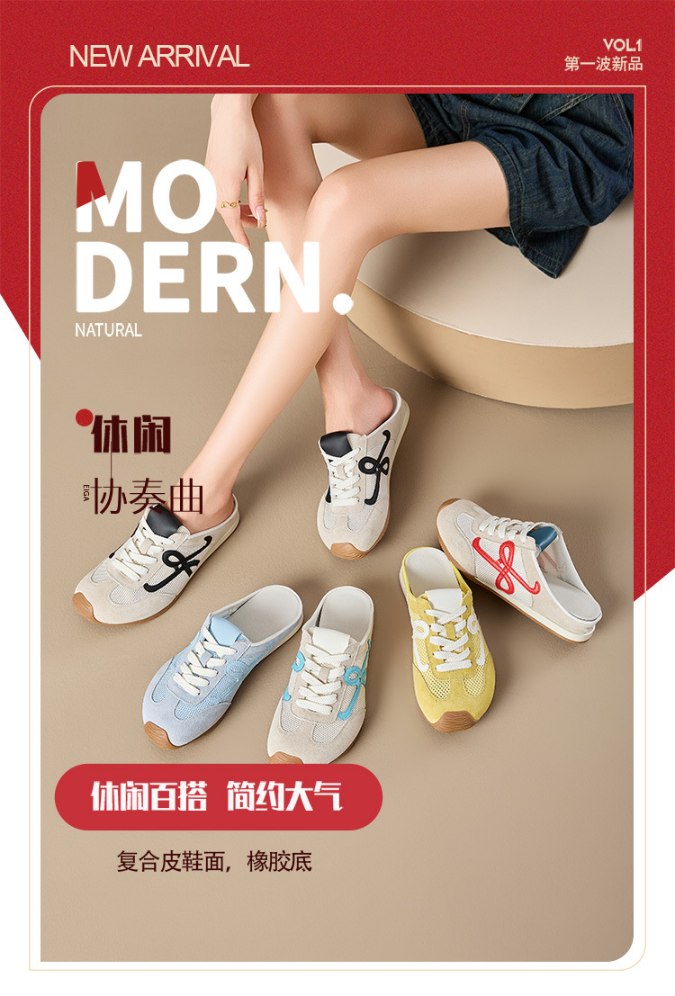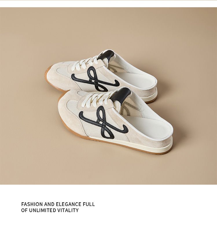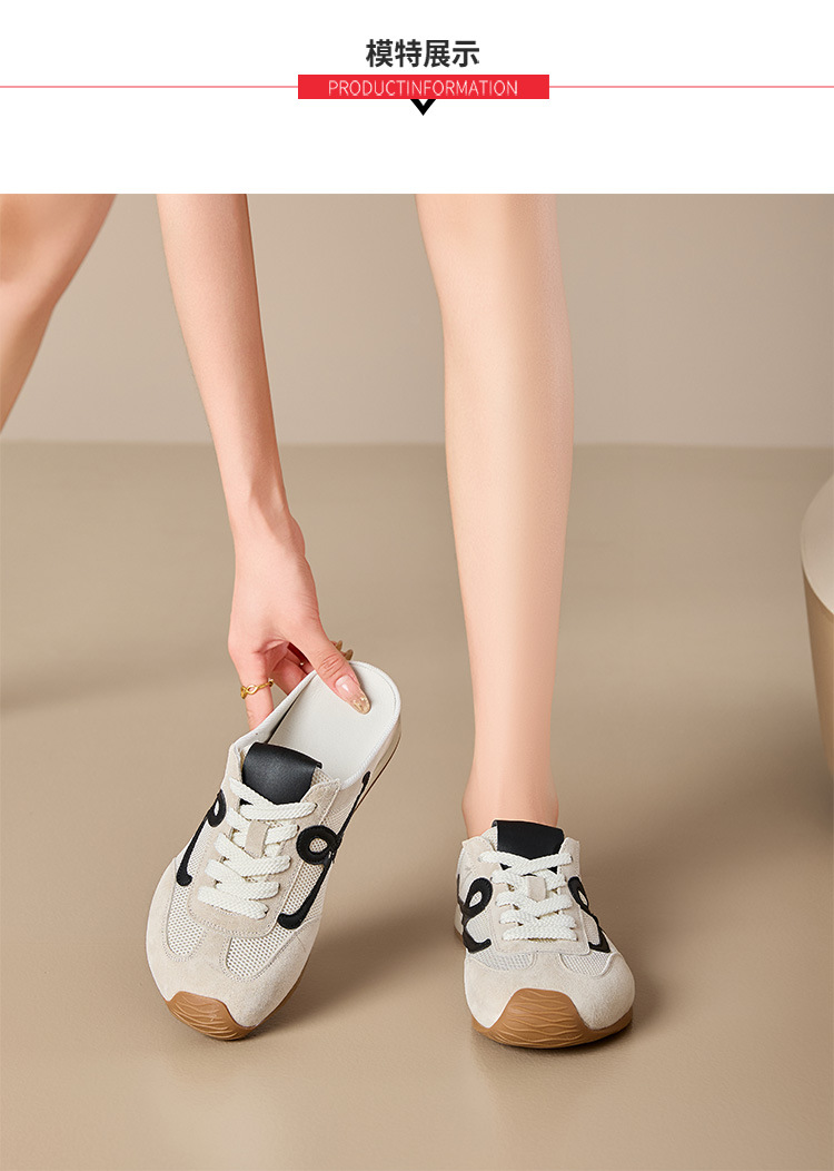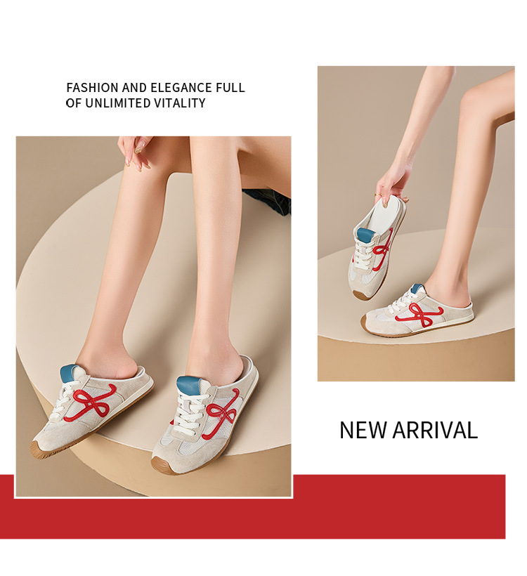 정품 가죽 Baotou Dexun 하프 슬리퍼 여성용 외부 착용 비뚤어진 머리 한 페달 게으른 캐주얼 슈즈와 함께 Big Mi Wang Yibo스토어 가기