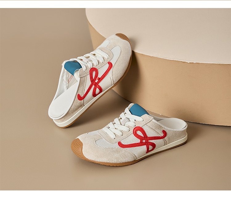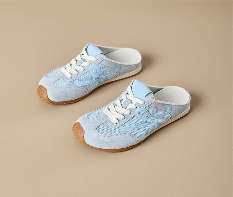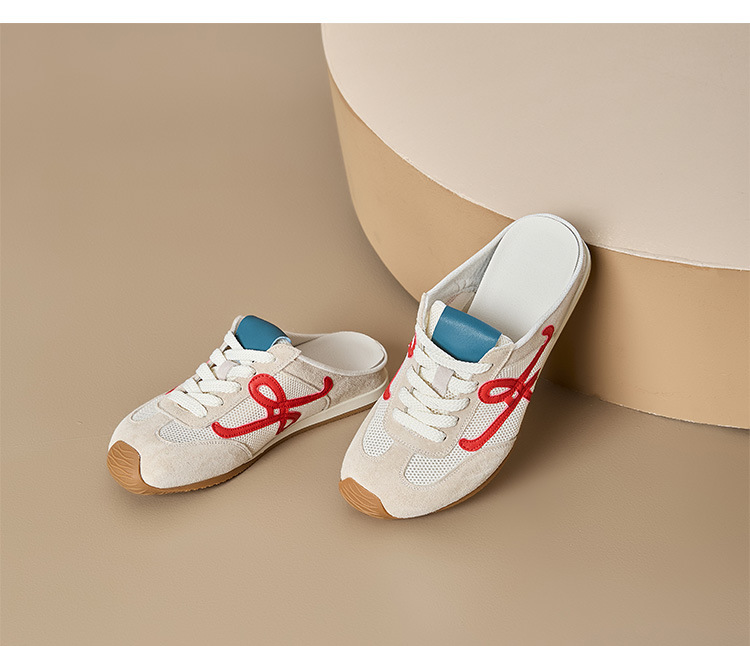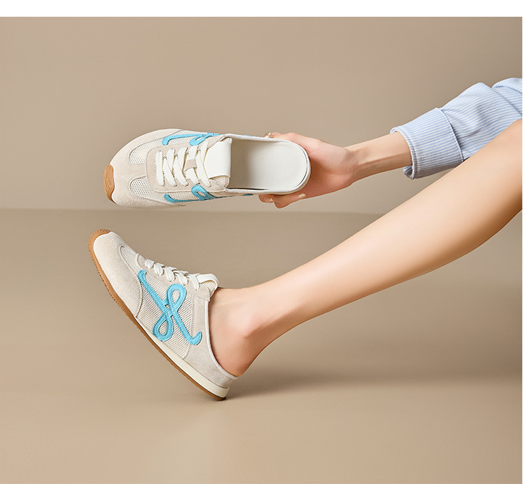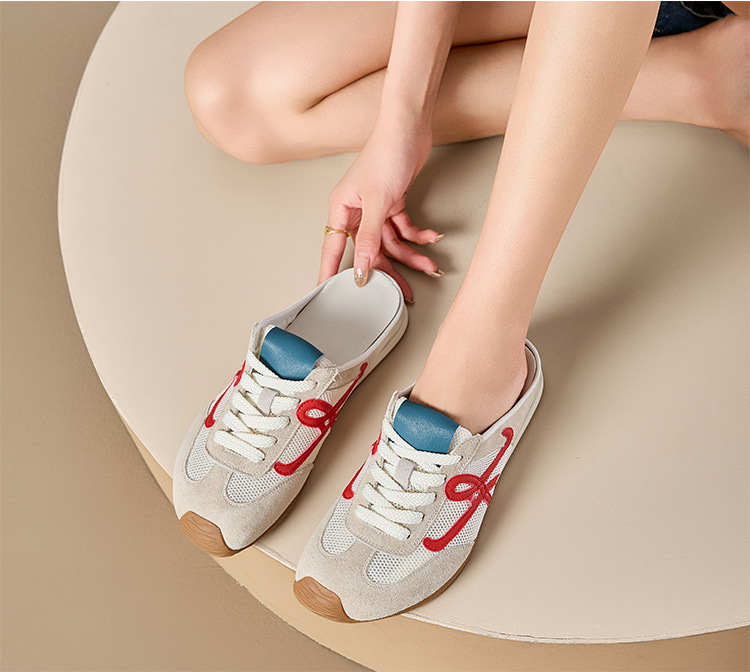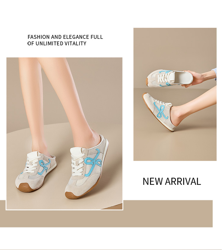 정품 가죽 Baotou Dexun 하프 슬리퍼 여성용 외부 착용 비뚤어진 머리 한 페달 게으른 캐주얼 슈즈와 함께 Big Mi Wang Yibo스토어 가기