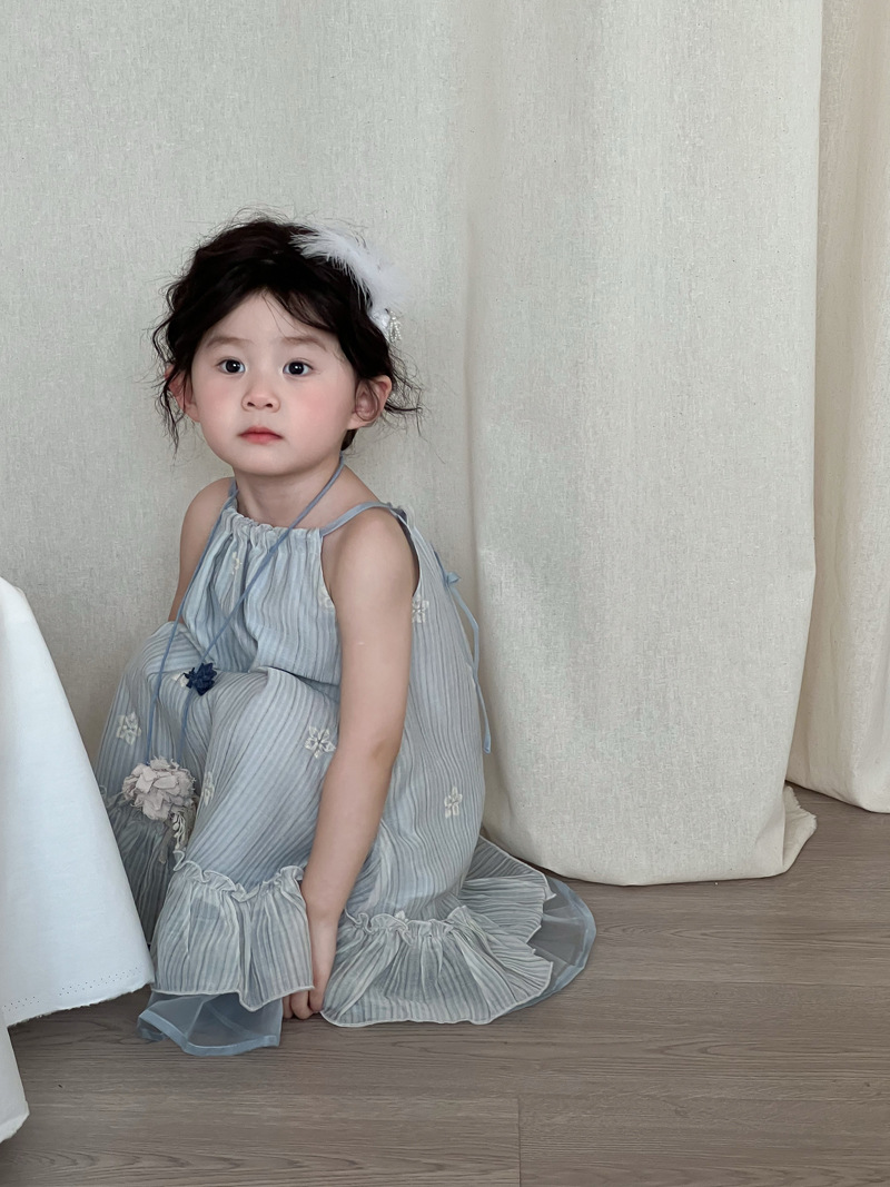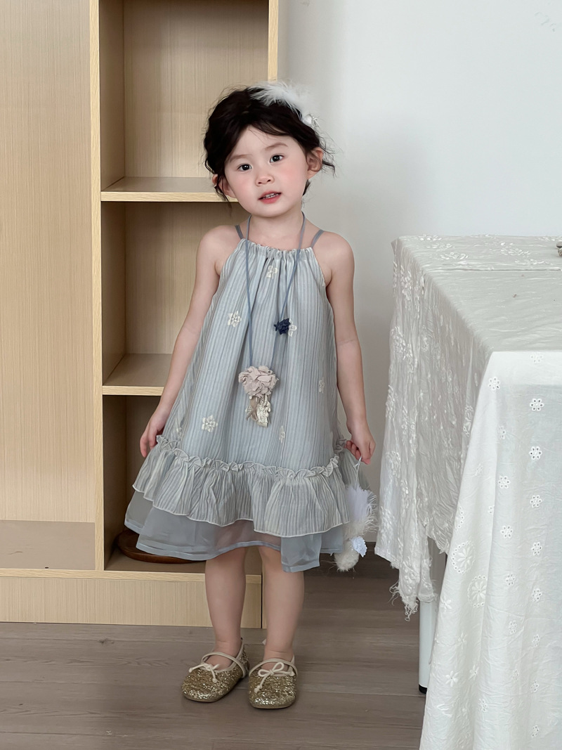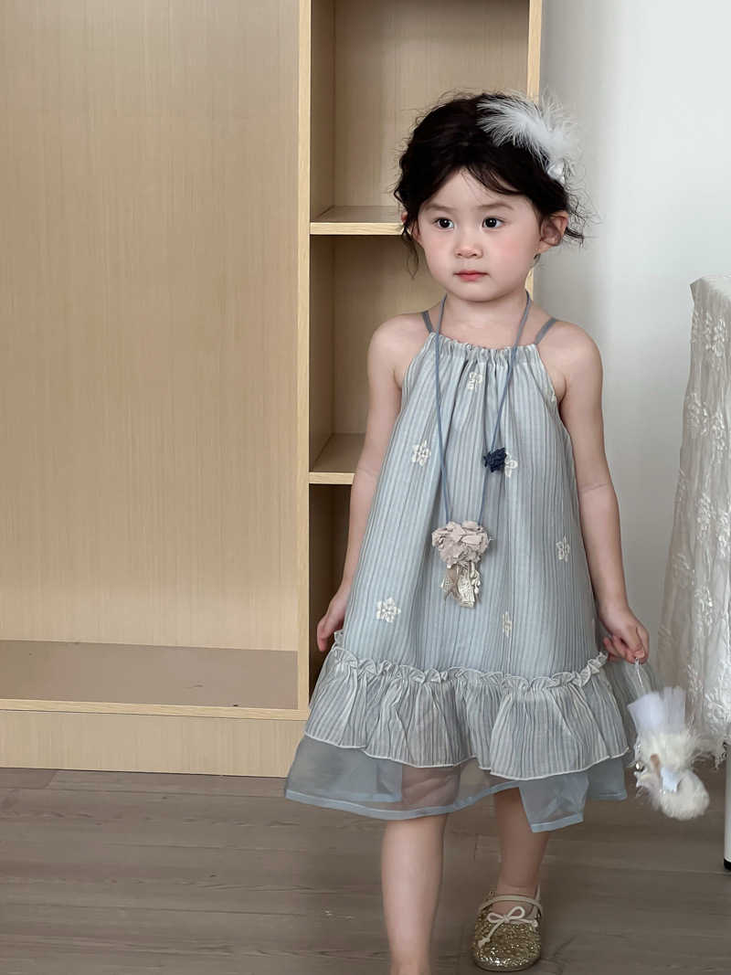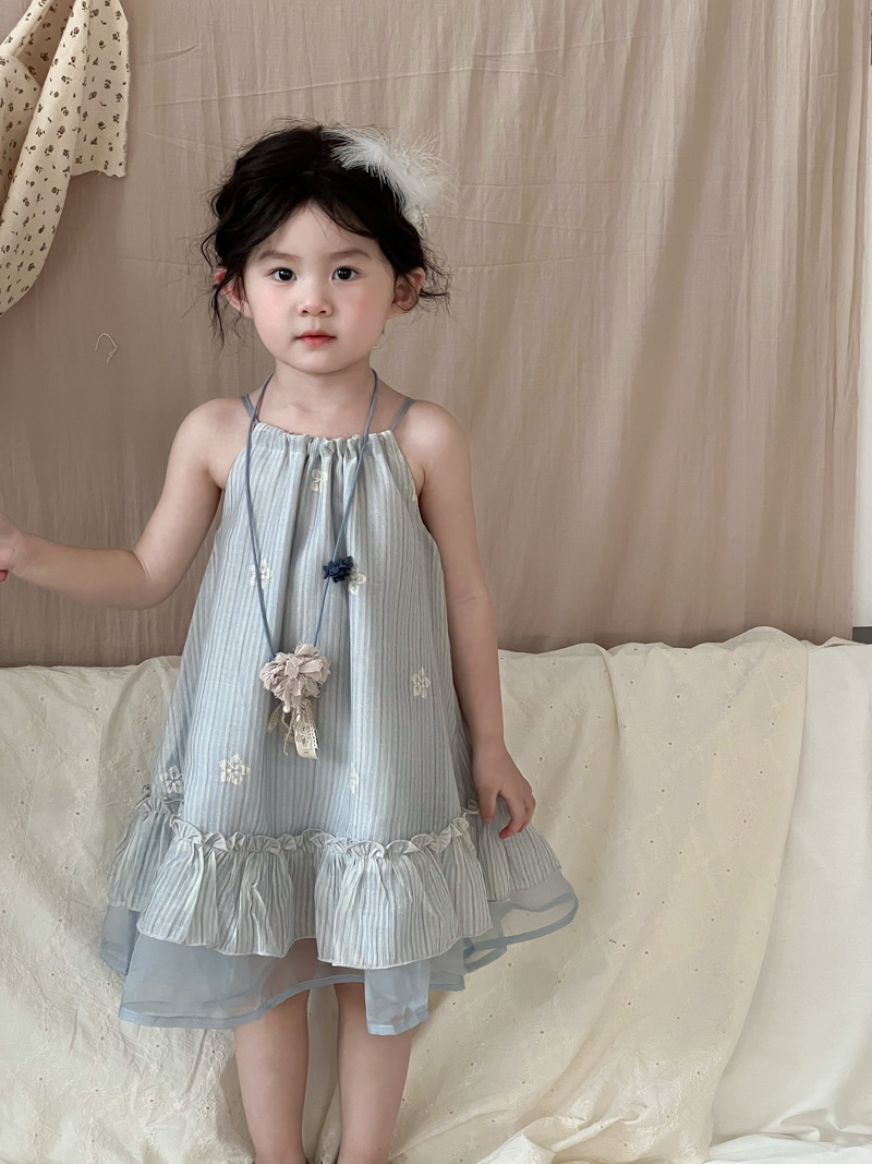 2025 년 여름 새 한국 스타일 소녀의 자수 꽃 공주 슬립 스커트 어린이 목 원피스 아기의 선박 스커트