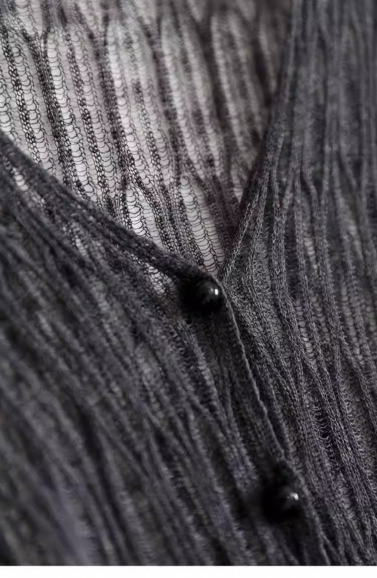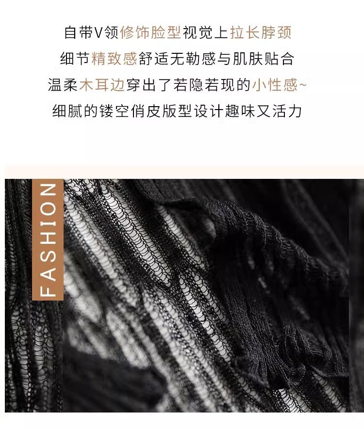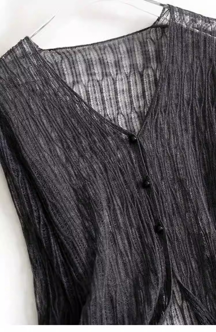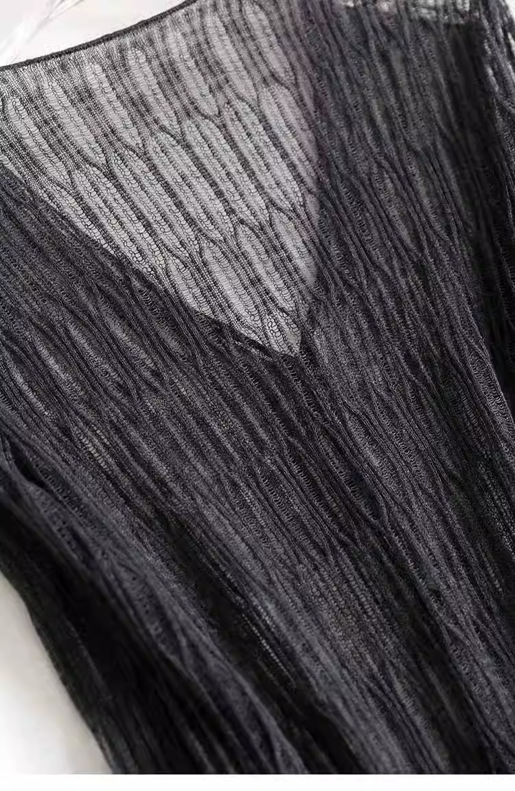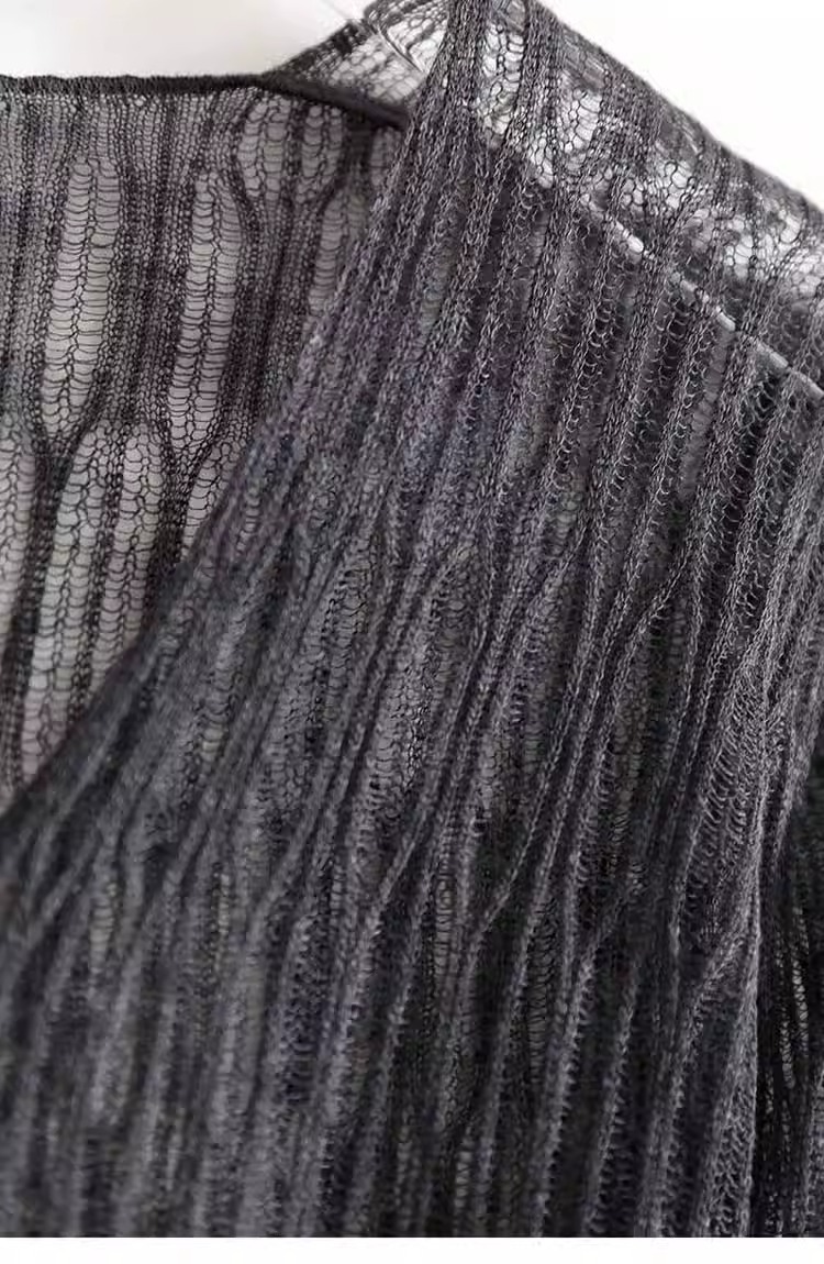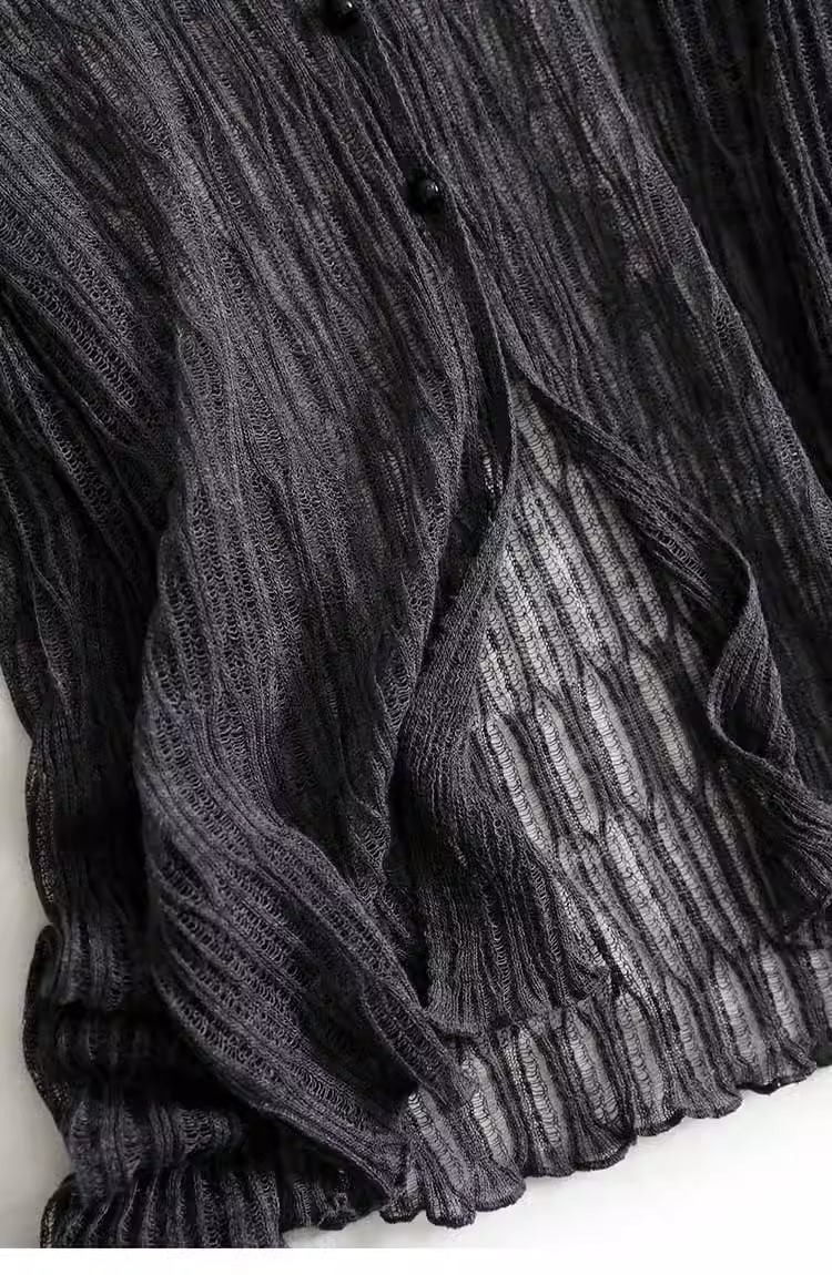디자인 감각 게으른 스타일 블랙 아이스 실크 V 넥 할로우 아웃 태양 보호 카디건 여성의 여름 얇은 외부 니트 카디건