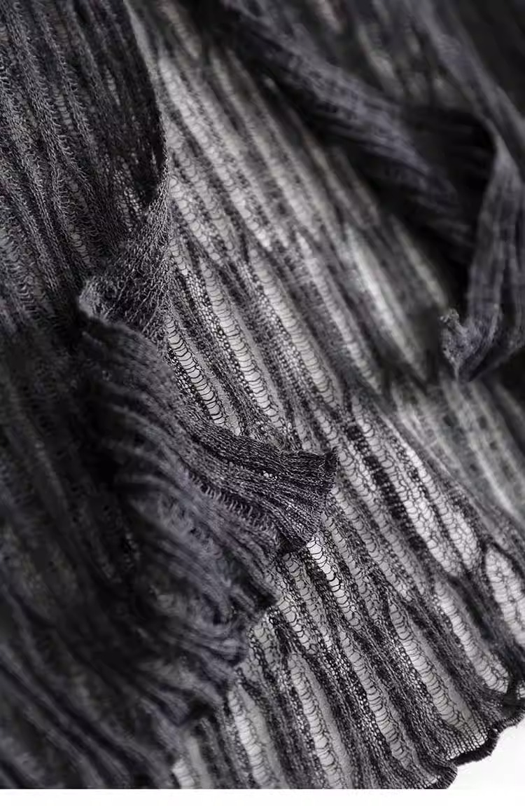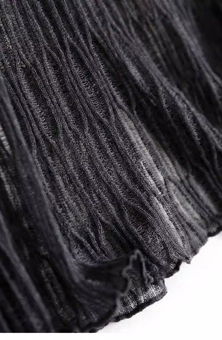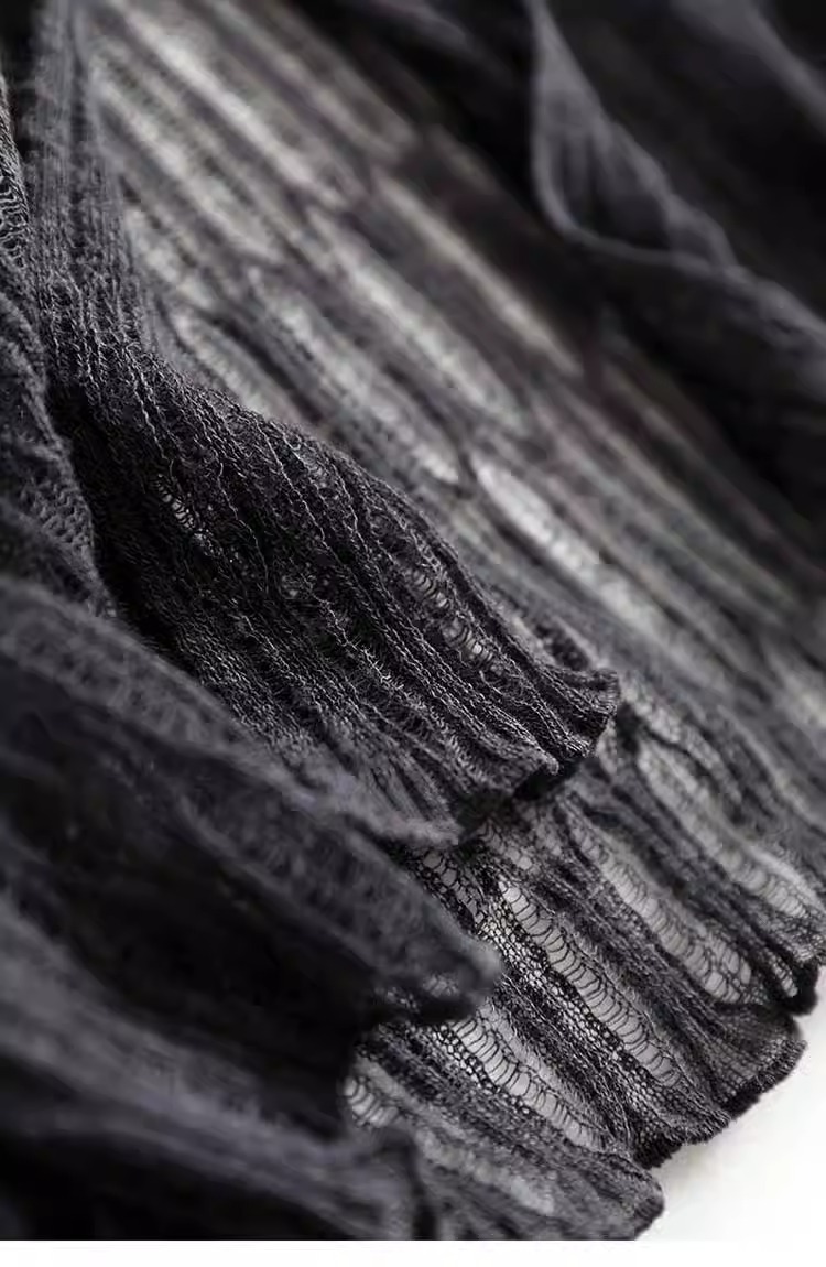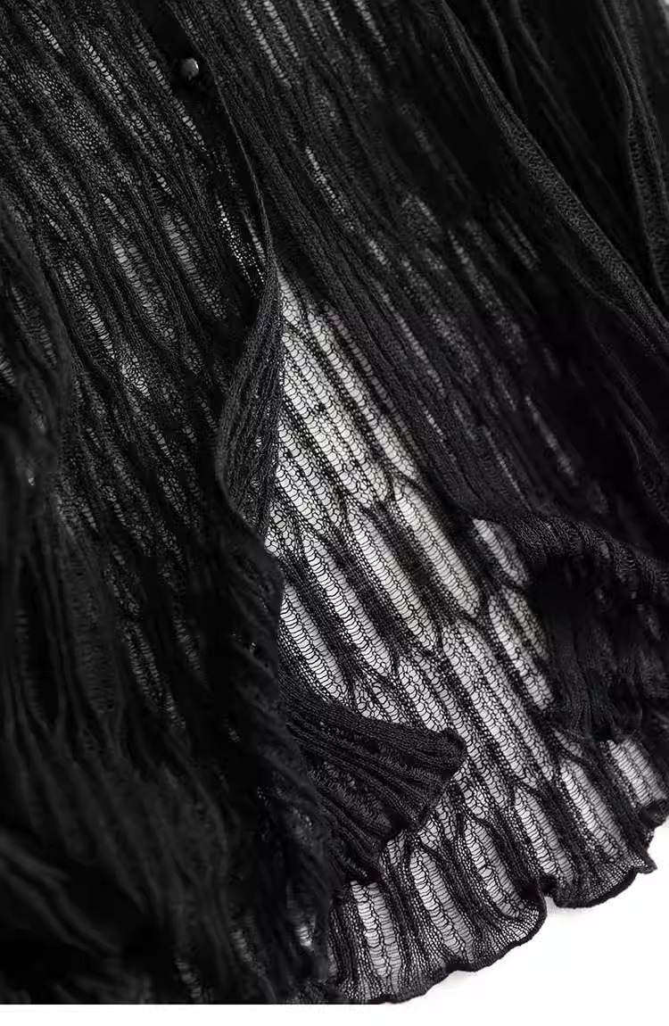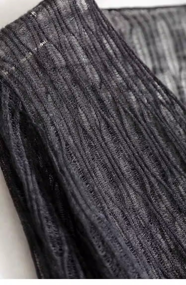 디자인 감각 게으른 스타일 블랙 아이스 실크 V 넥 할로우 아웃 태양 보호 카디건 여성의 여름 얇은 외부 니트 카디건