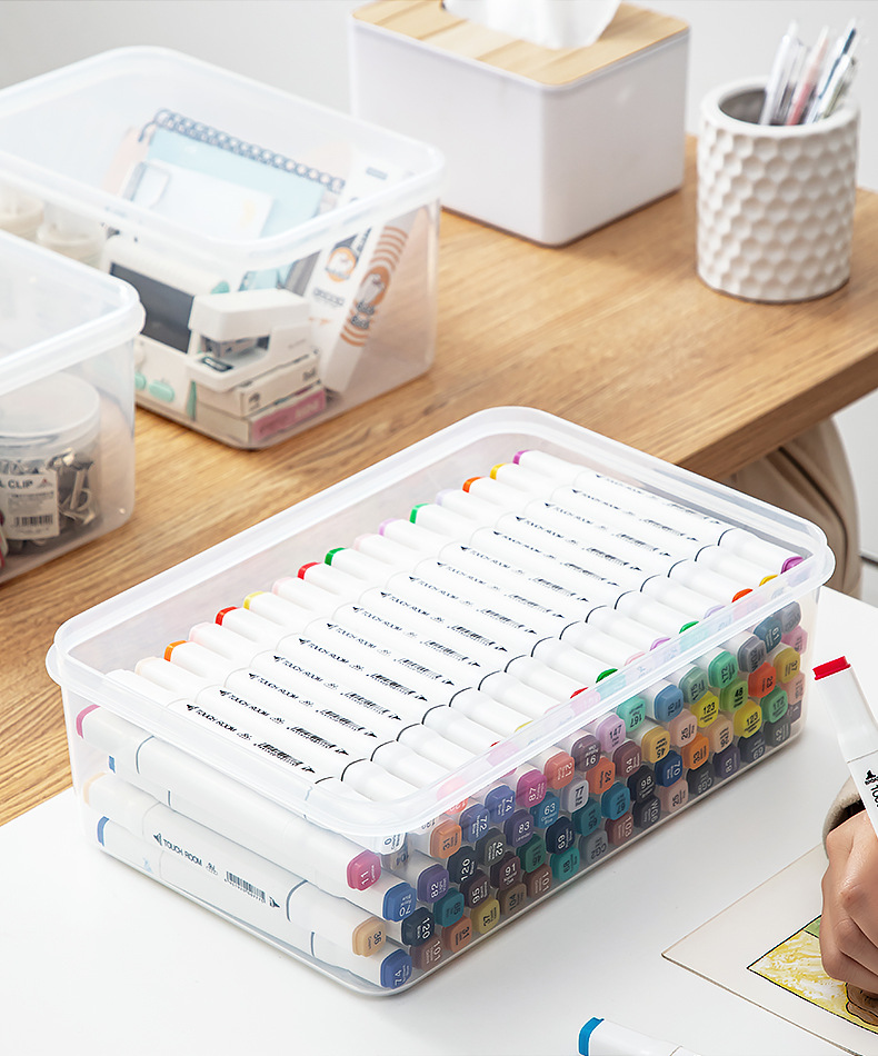 뚜껑이 있는 투명 보관함 사무실 학생 책상 아크릴 방진 보관함 화장품 립스틱 보관 바구니