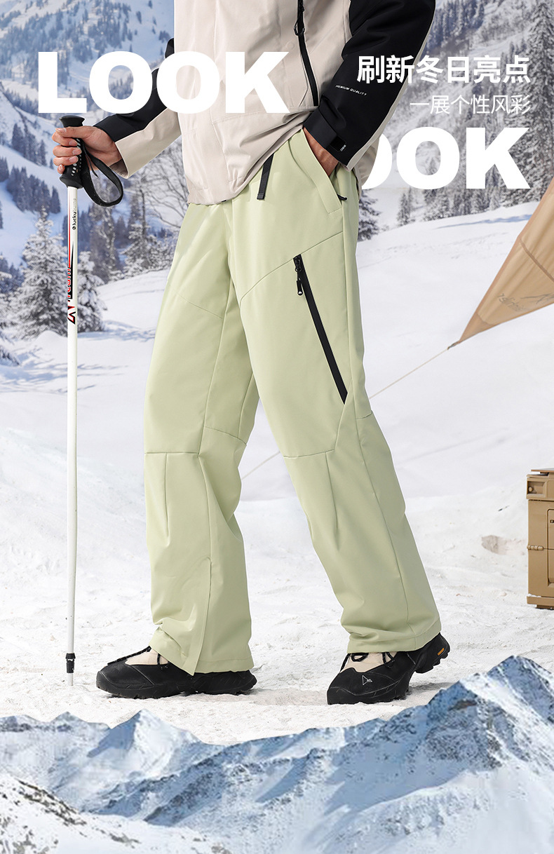 2024 새로운 겨울 작업복 남성용 방풍, 방수 및 따뜻한 스트레이트 루즈 충전 바지 야외 레저 스키 바지