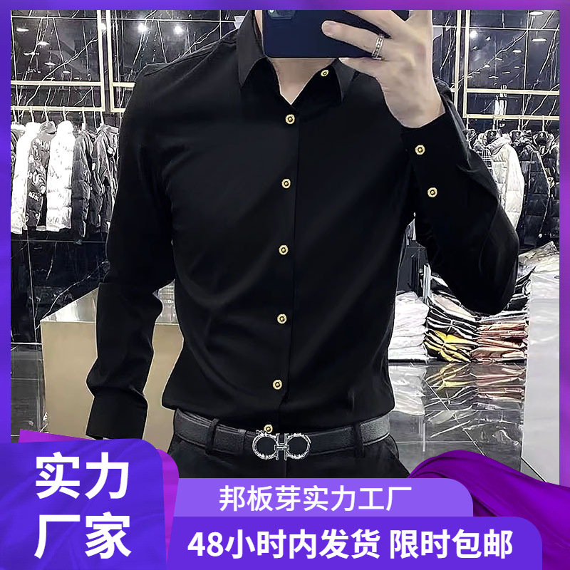 2025 봄 스타일 캐주얼 긴팔 셔츠 남성 가을 새로운 크라운 버튼 슬림 스트레치 비즈니스 셔츠 도매스토어 가기