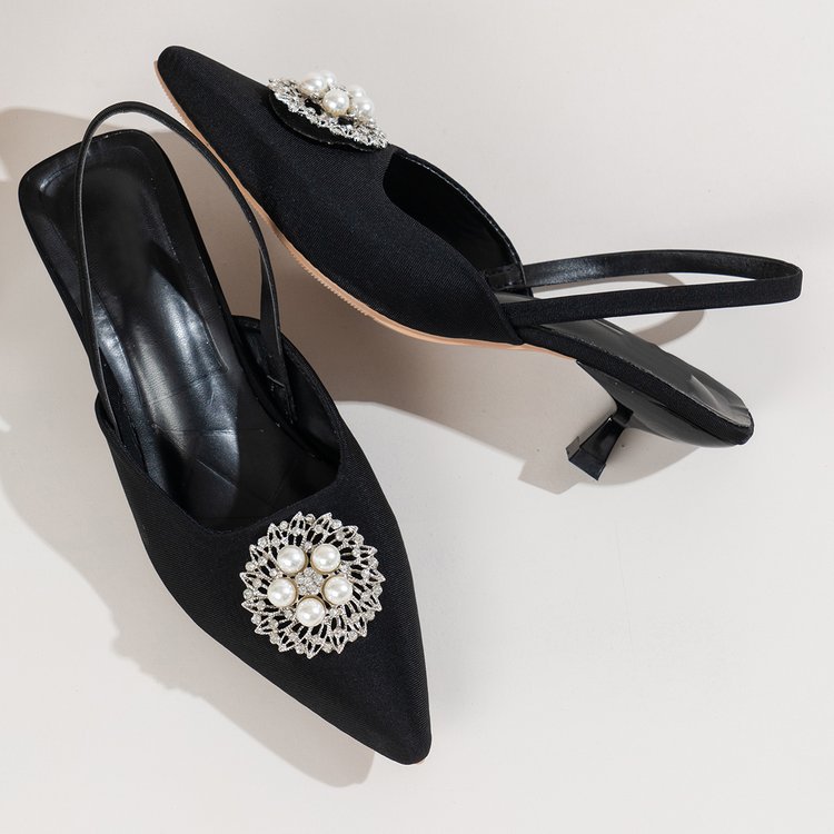 대외 무역 프렌치 포인티드 펄 스틸레토 하이힐 샌들 여성 섹시 버클 백 스트랩 하이힐 여성 힐 블랙