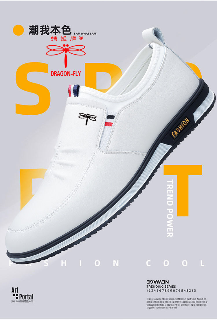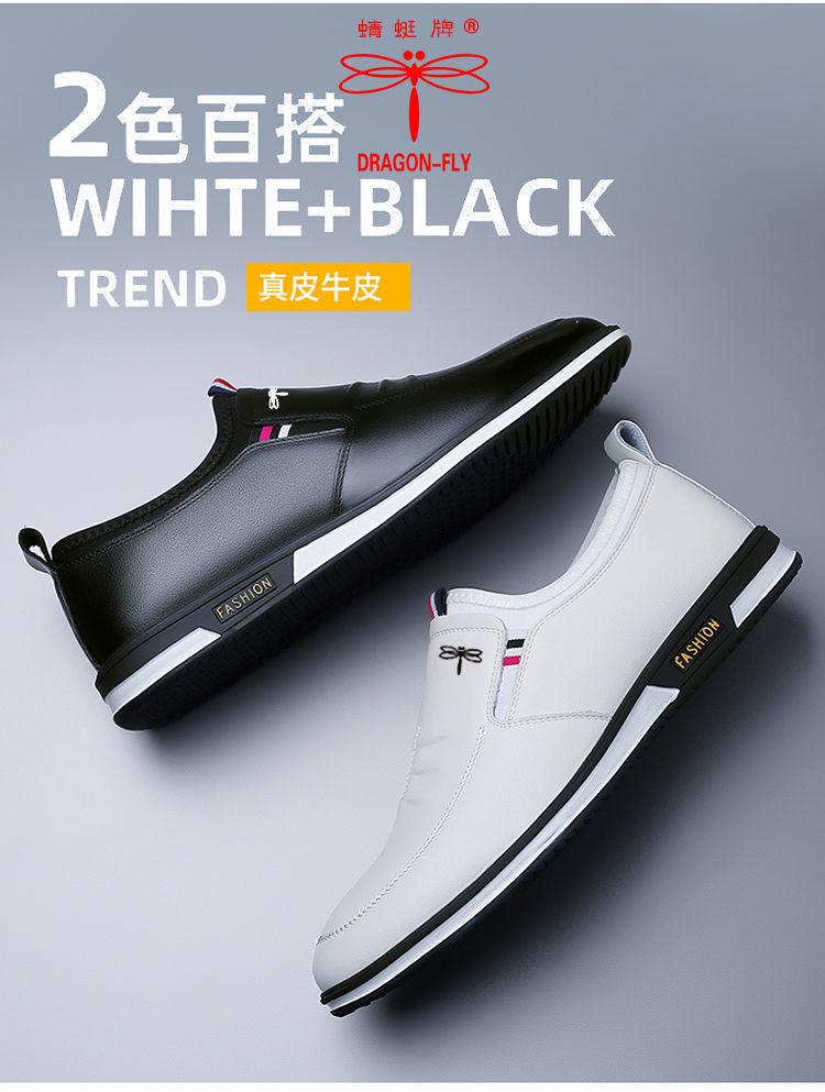 Dragonfly 브랜드 정품 가죽 화이트 남성 신발 남성 비즈니스 캐주얼 소가죽 신발 한국식 내부 강화 다용도 슬립온 부드러운 밑창 신발