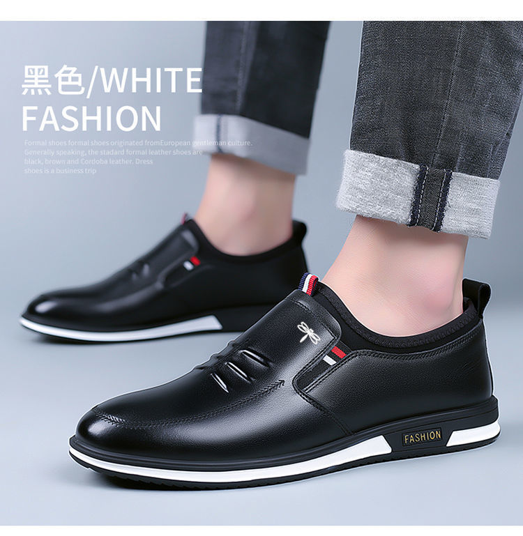 Dragonfly 브랜드 정품 가죽 화이트 남성 신발 남성 비즈니스 캐주얼 소가죽 신발 한국식 내부 강화 다용도 슬립온 부드러운 밑창 신발스토어 가기