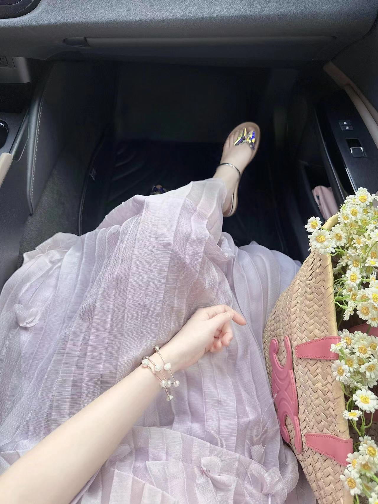해변 휴일 여름 프랑스 스타일 우아한 슬리밍 느슨한 슬링 원피스 긴 원피스 요정 3 차원 새로운 꽃스토어 가기