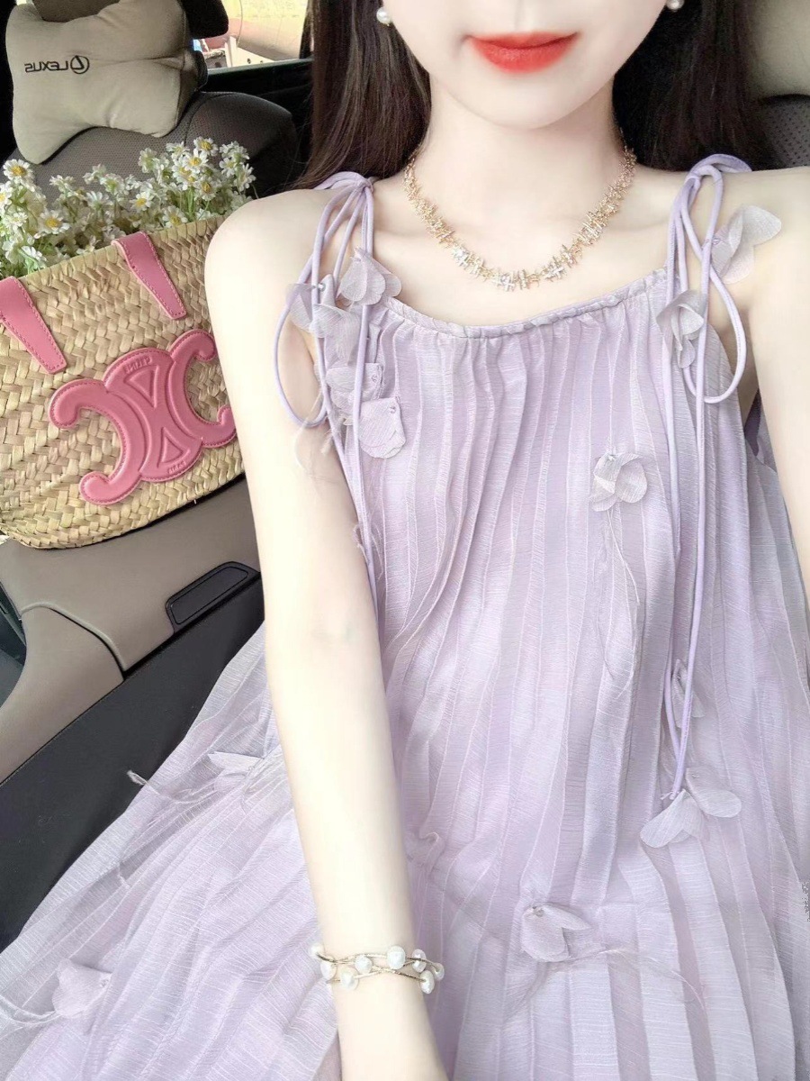 해변 휴일 여름 프랑스 스타일 우아한 슬리밍 느슨한 슬링 원피스 긴 원피스 요정 3 차원 새로운 꽃