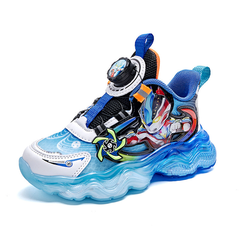 울트라 맨 소년 신발 2025 새로운 여름 어린이 메쉬 통기성 스포츠 신발 회전 버클 조명 빛나는 신발