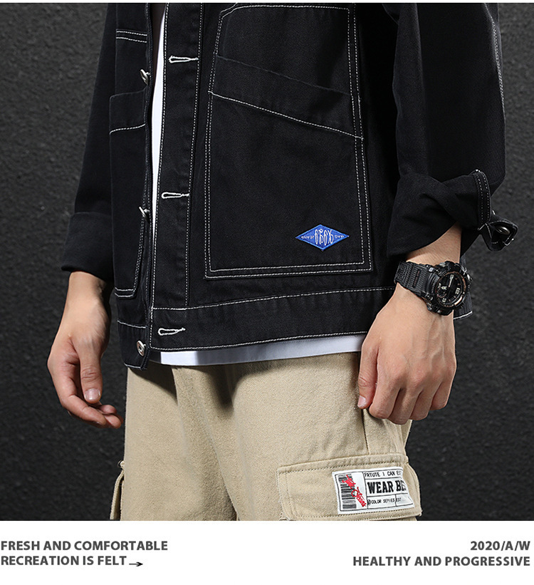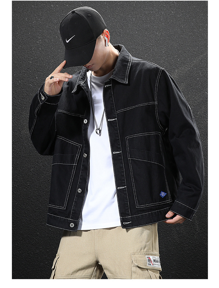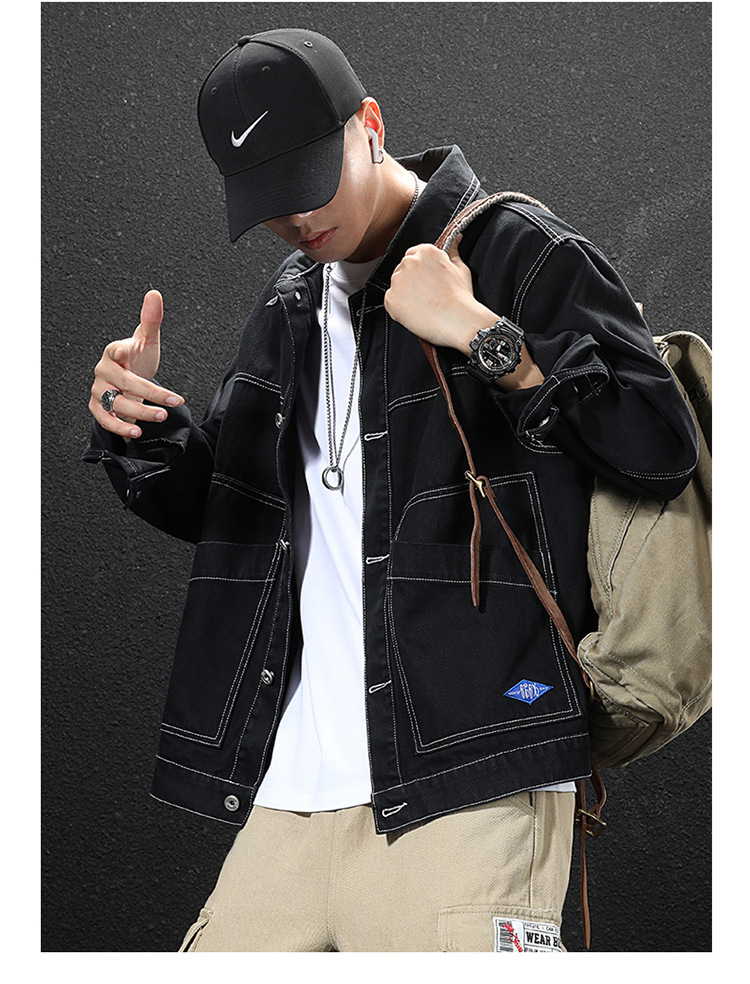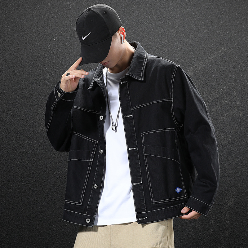 봄과 가을 간단하고 다재다능한 작업복 데님 재킷 남성용 루즈 플러스 사이즈 트렌디 브랜드 재킷 캐주얼 아우터 도매스토어 가기