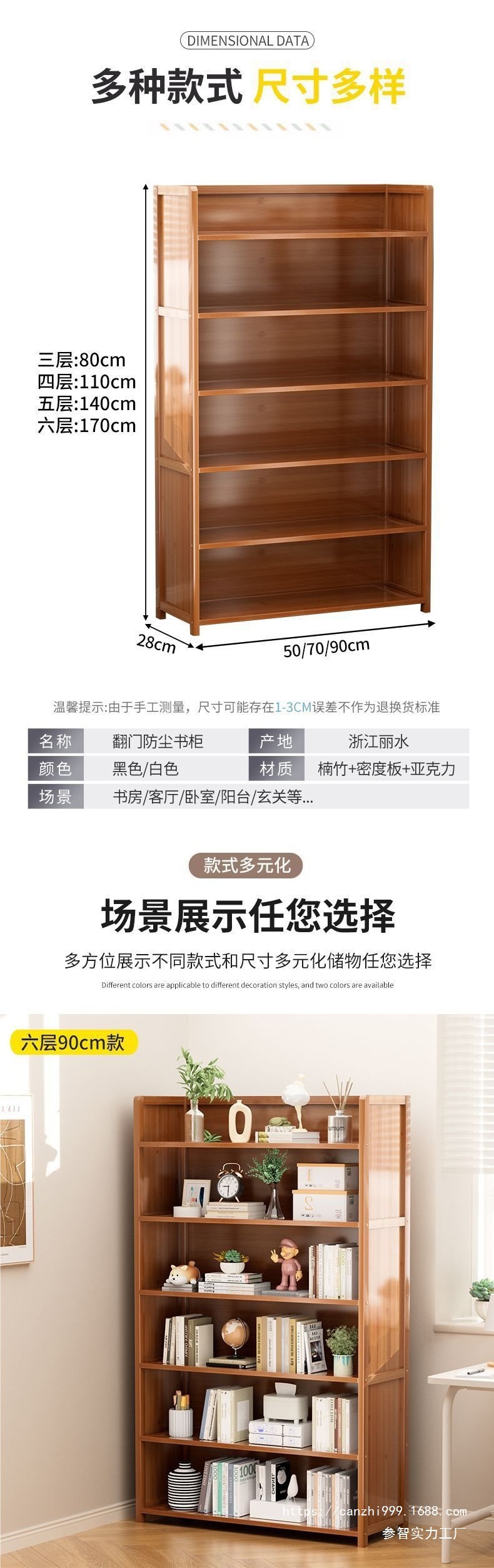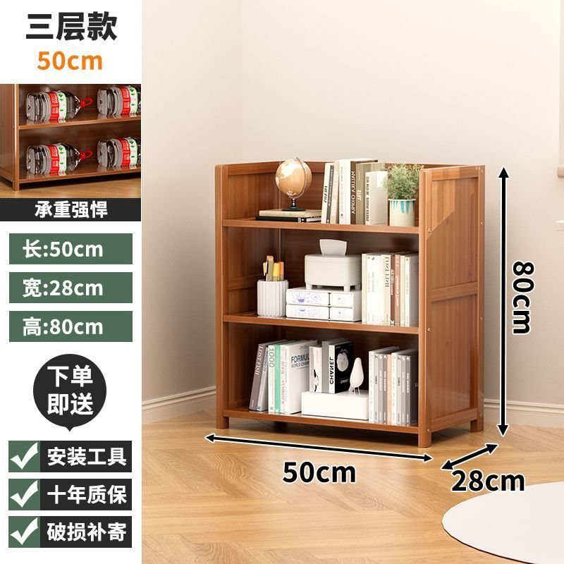 책장 보관 선반 바닥 책장 다층 어린이 학생 대나무 보관 선반 거실 간단한 디스플레이 보관 랙스토어 가기
