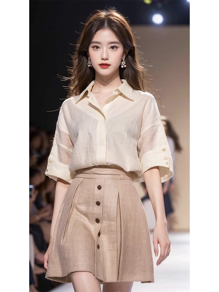 2024 세트 새로운 여성 의류 면화와 린넨 셔츠 패션 카키 린넨 원피스 세트로 여름 원피스스토어 가기