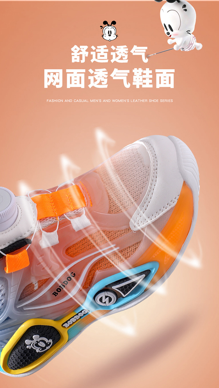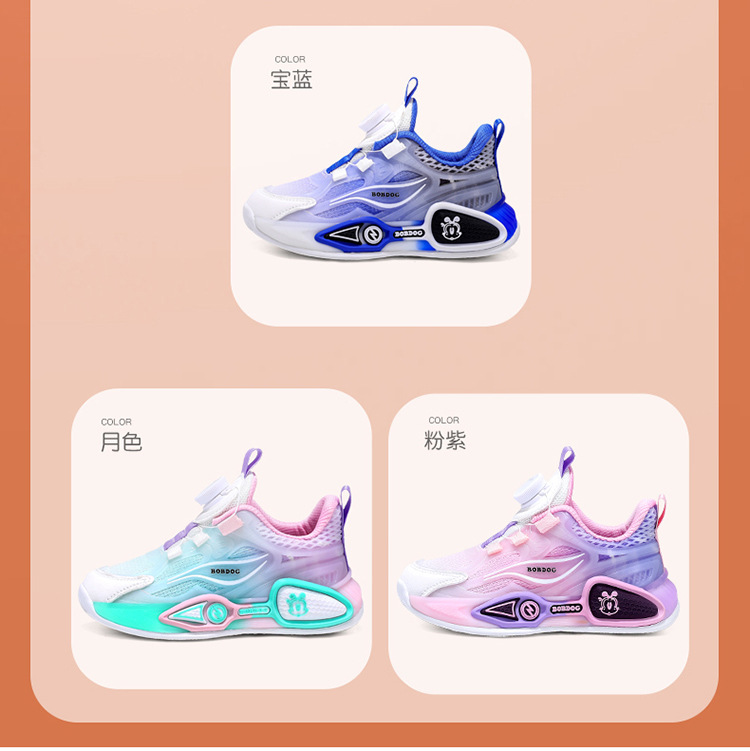Babudou 아동화, 남아 운동화, 봄, 가을 메쉬 통기성 초경량 소프트 솔 다용도 여아 야광 운동화