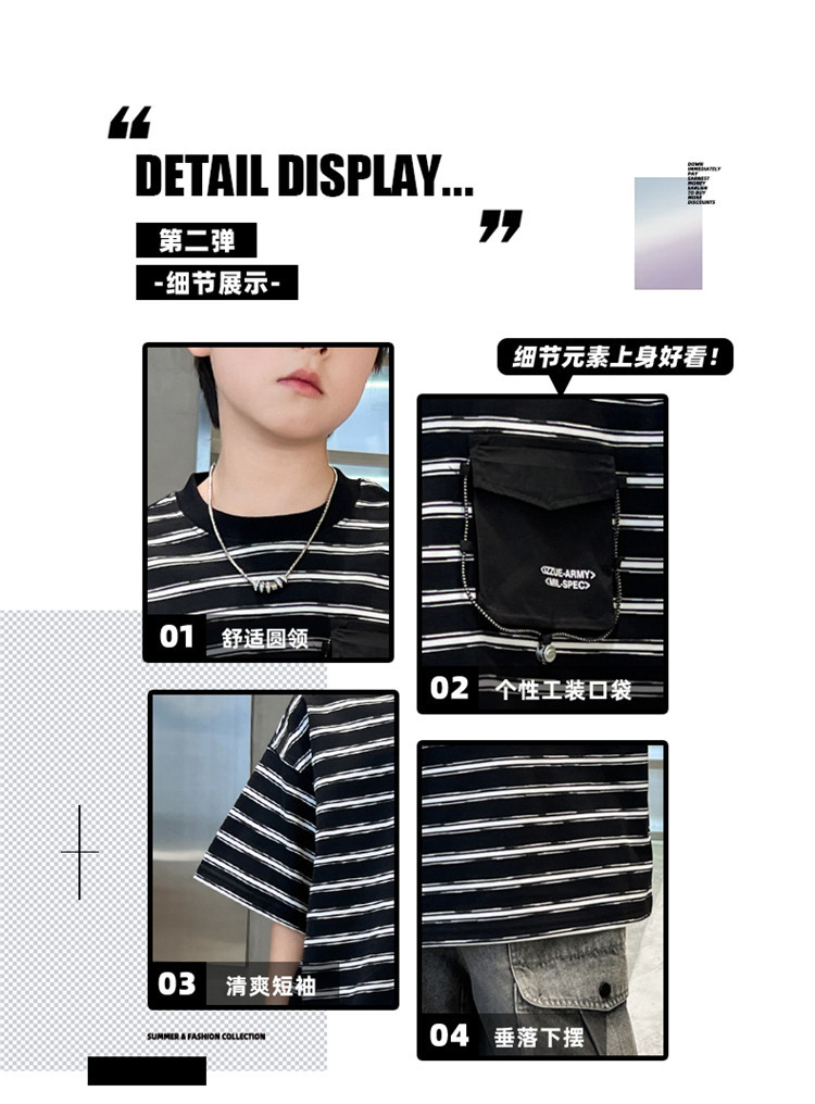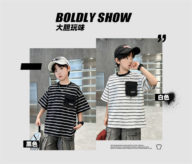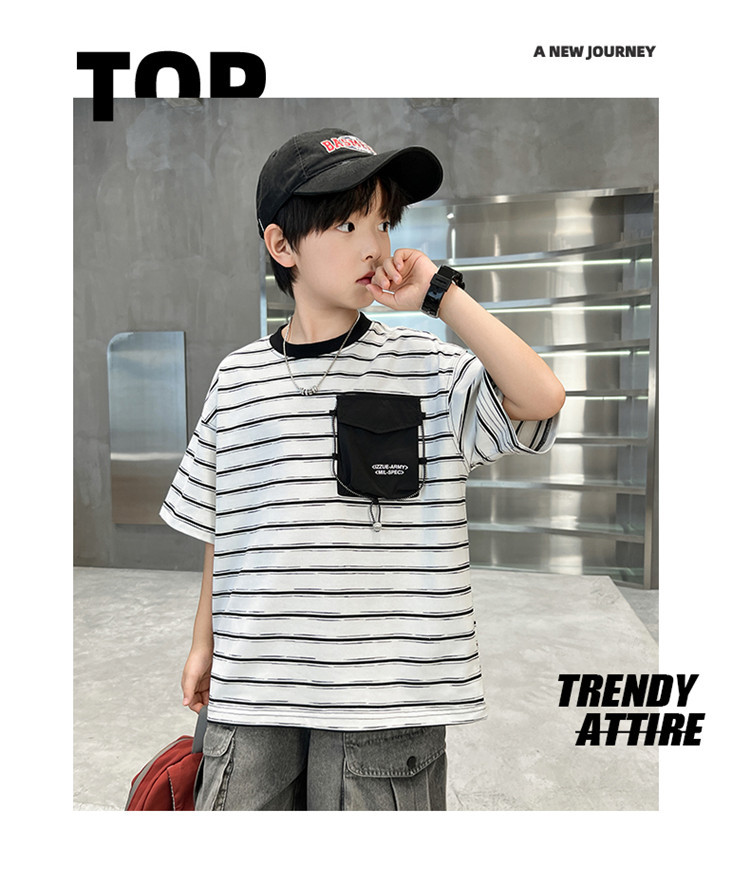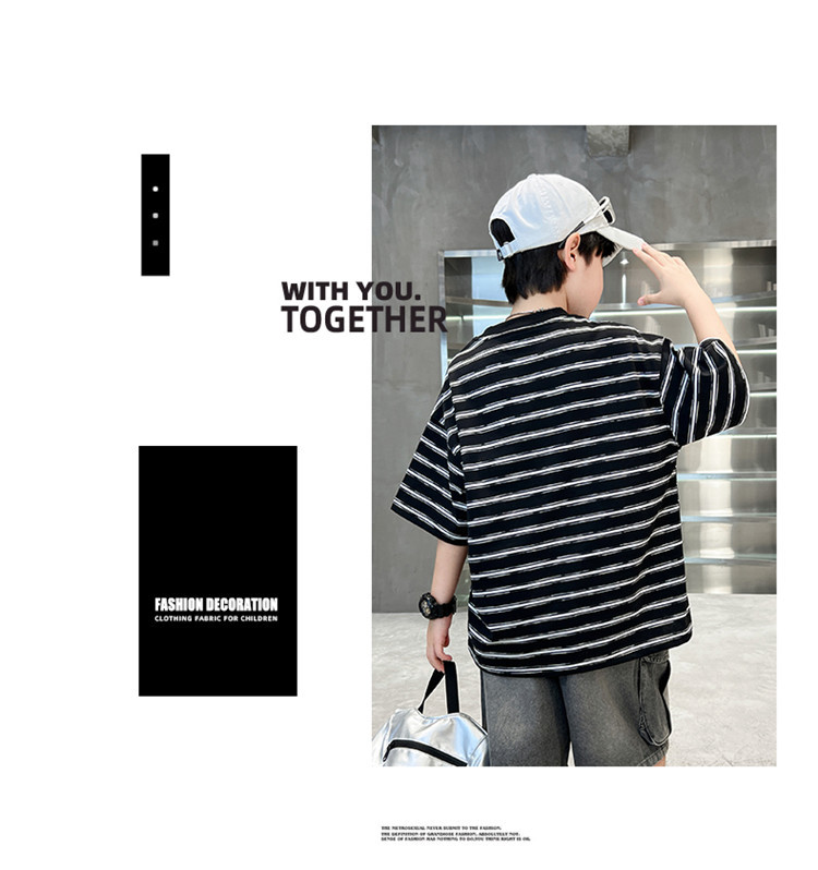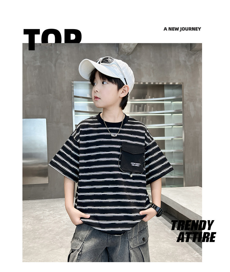 소년 티셔츠 2025 새로운 여름 어린이 줄무늬 탑 유행 소년 반소매 중년 어린이 핫 여름 티셔츠스토어 가기