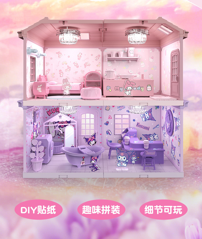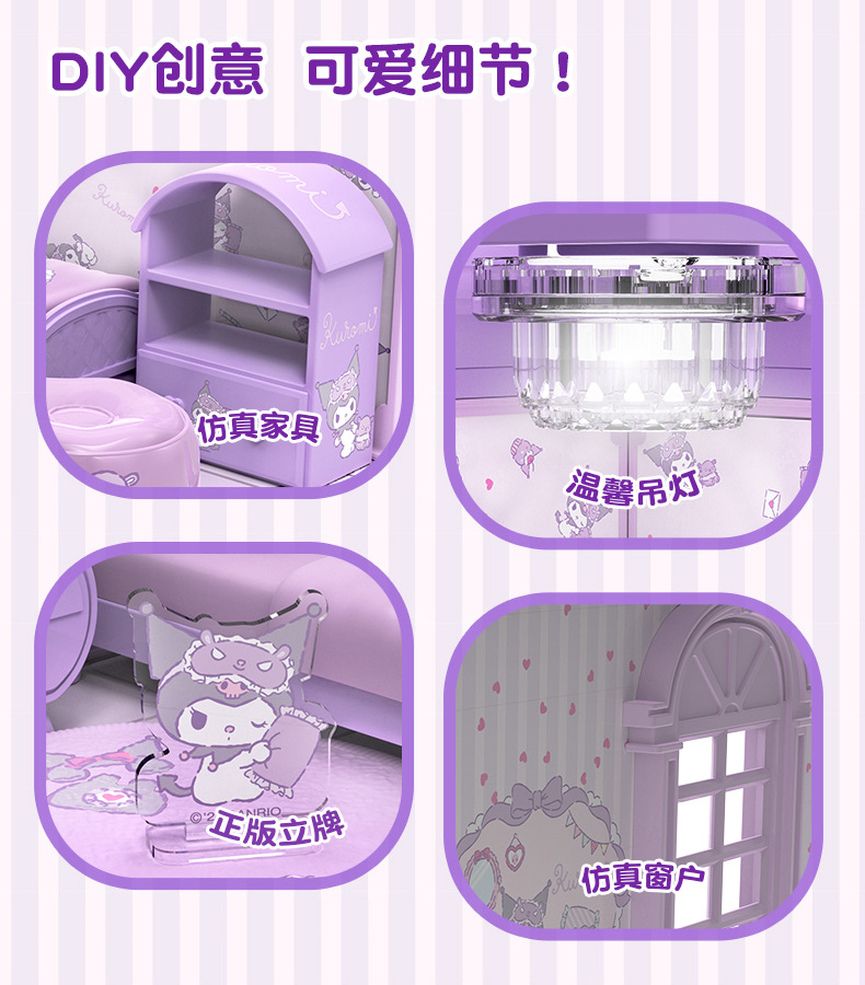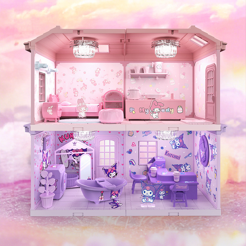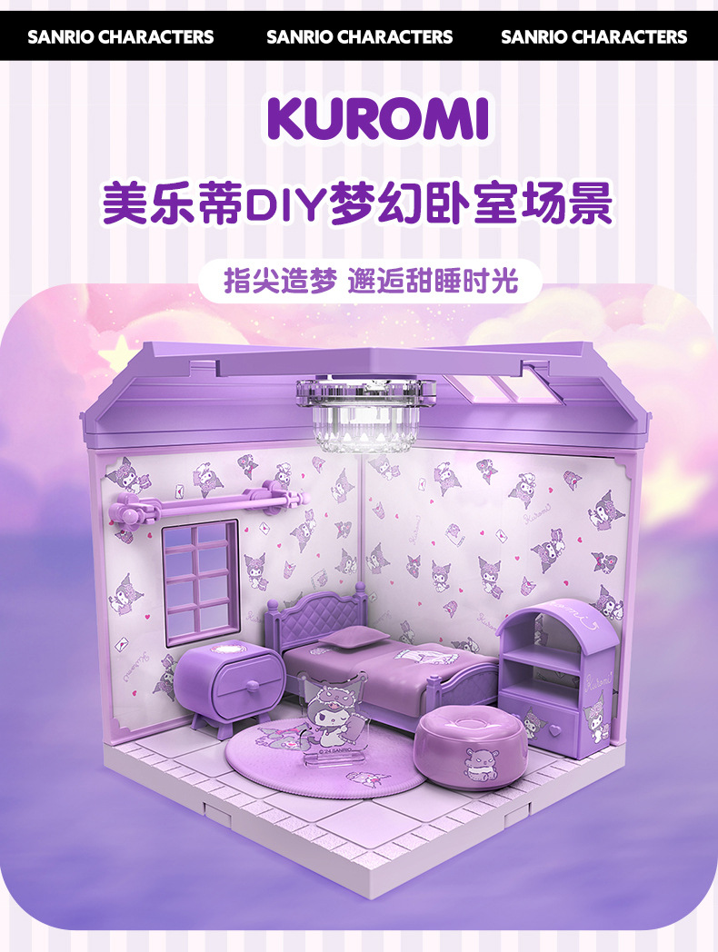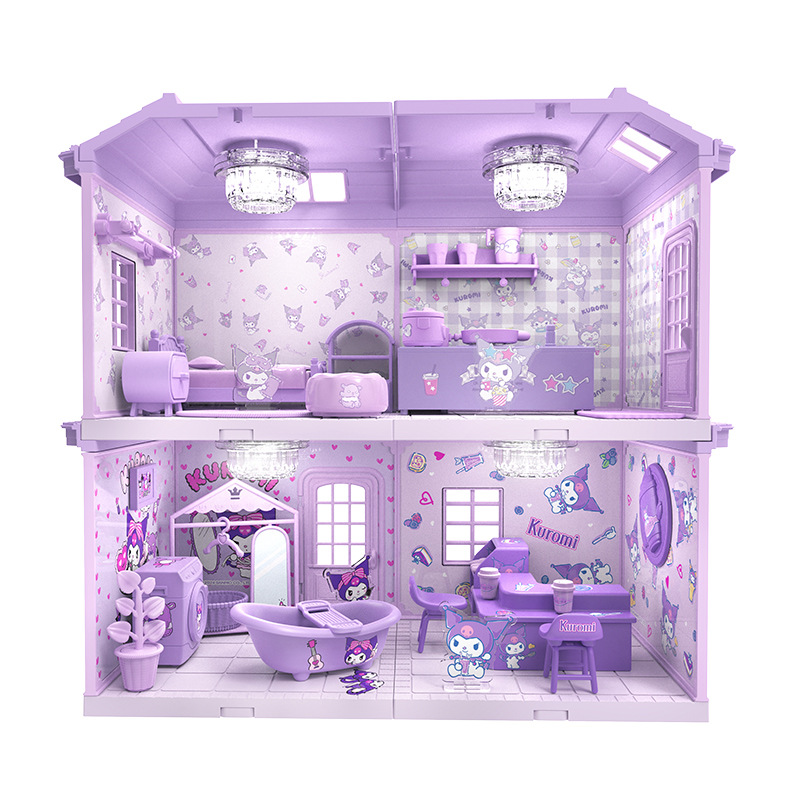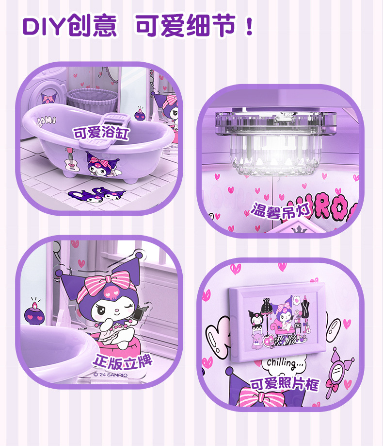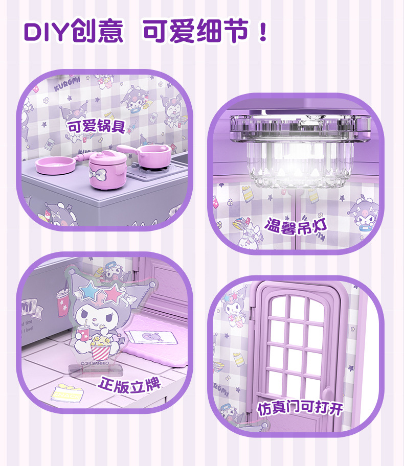 정품 Sanrio Kuromi Melody 놀이 집 장면 장식품 커피 욕실 침실 소녀 어린이 장난감