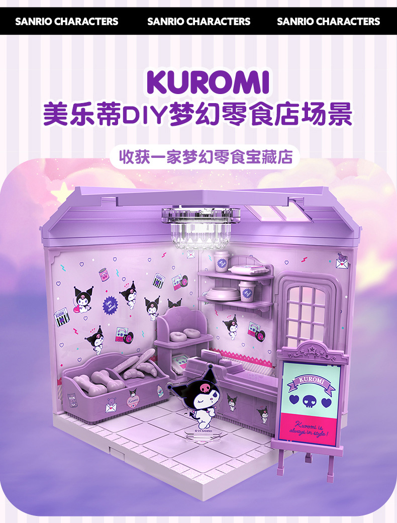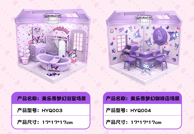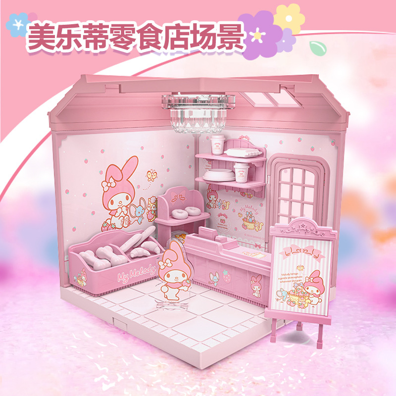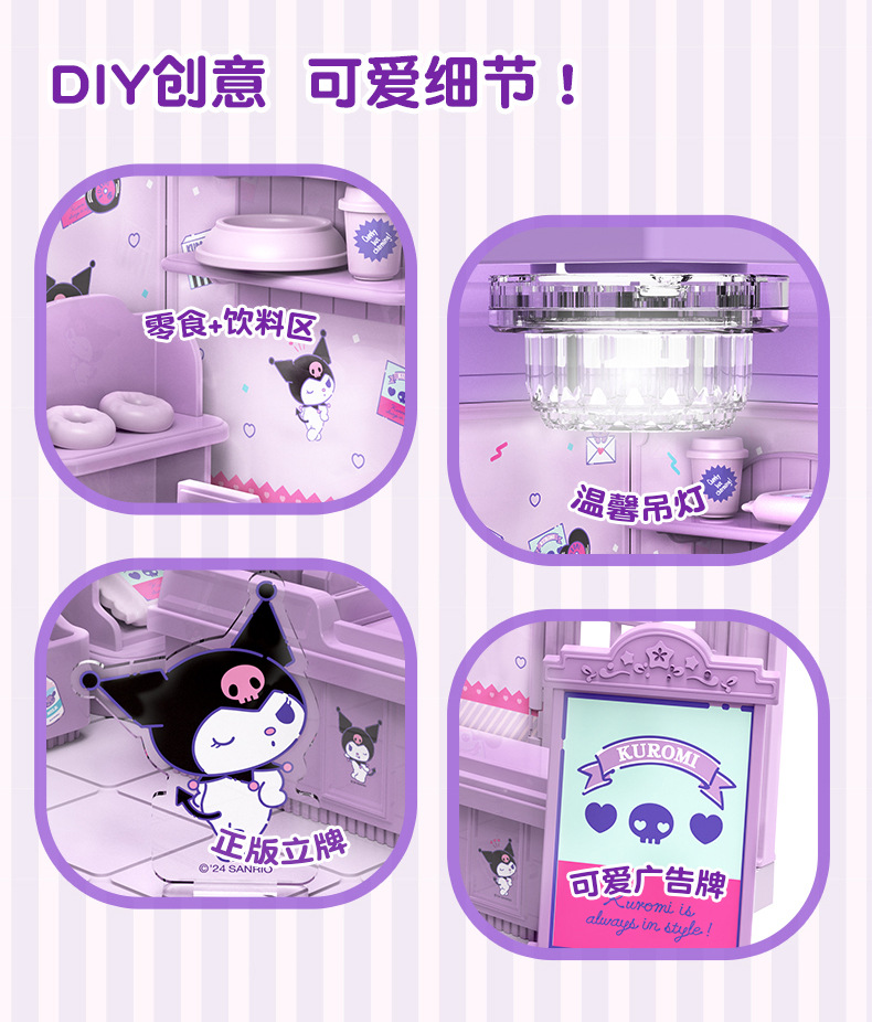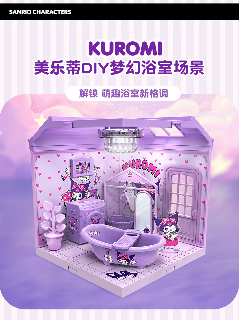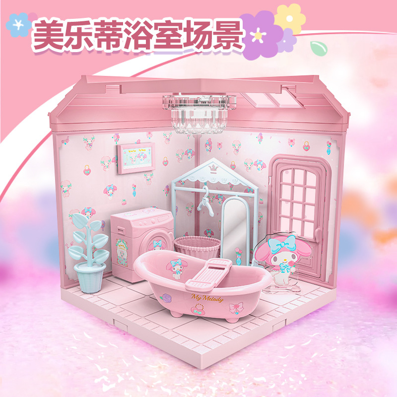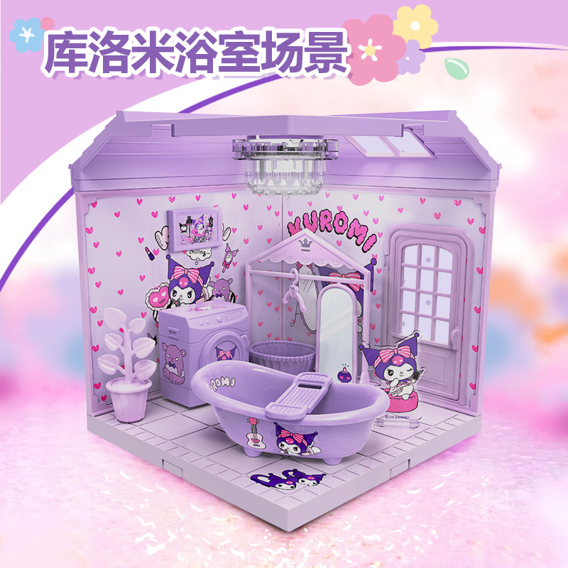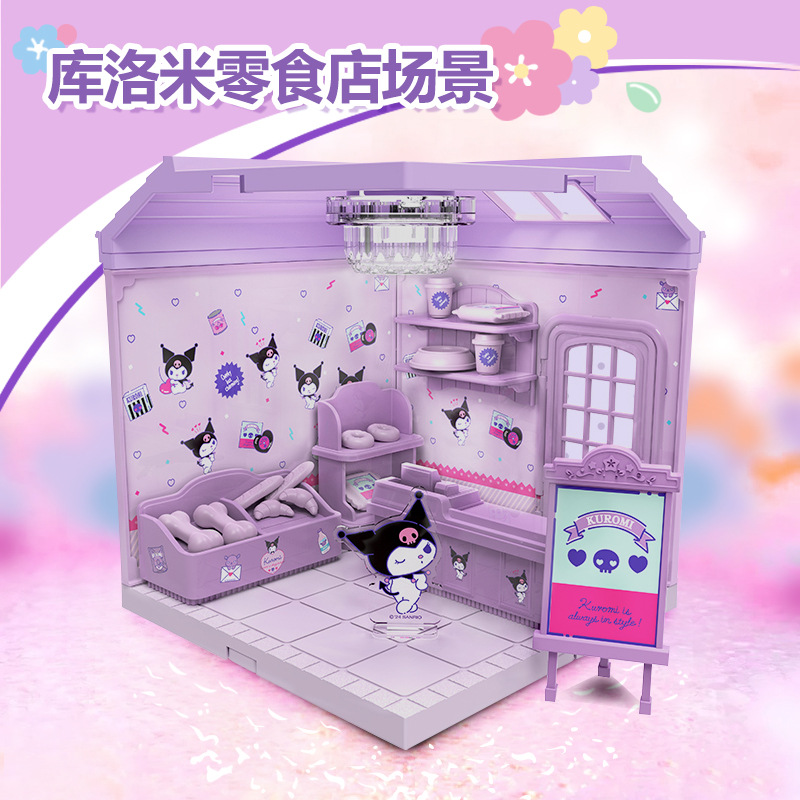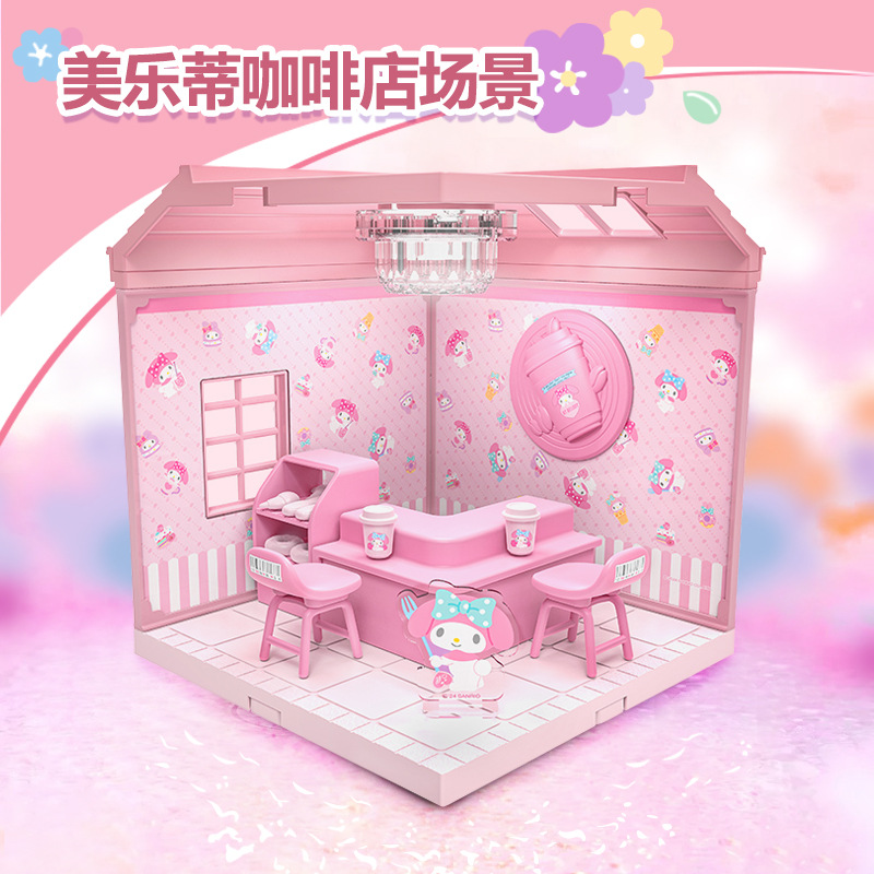 정품 Sanrio Kuromi Melody 놀이 집 장면 장식품 커피 욕실 침실 소녀 어린이 장난감스토어 가기