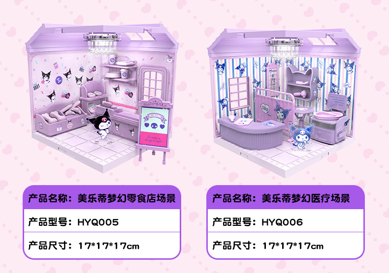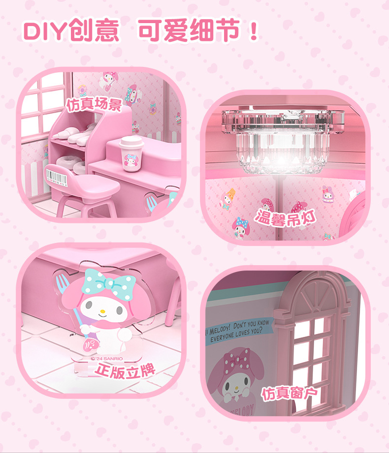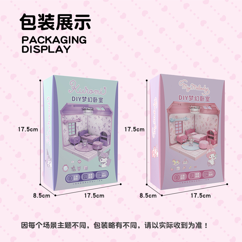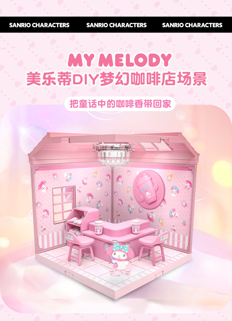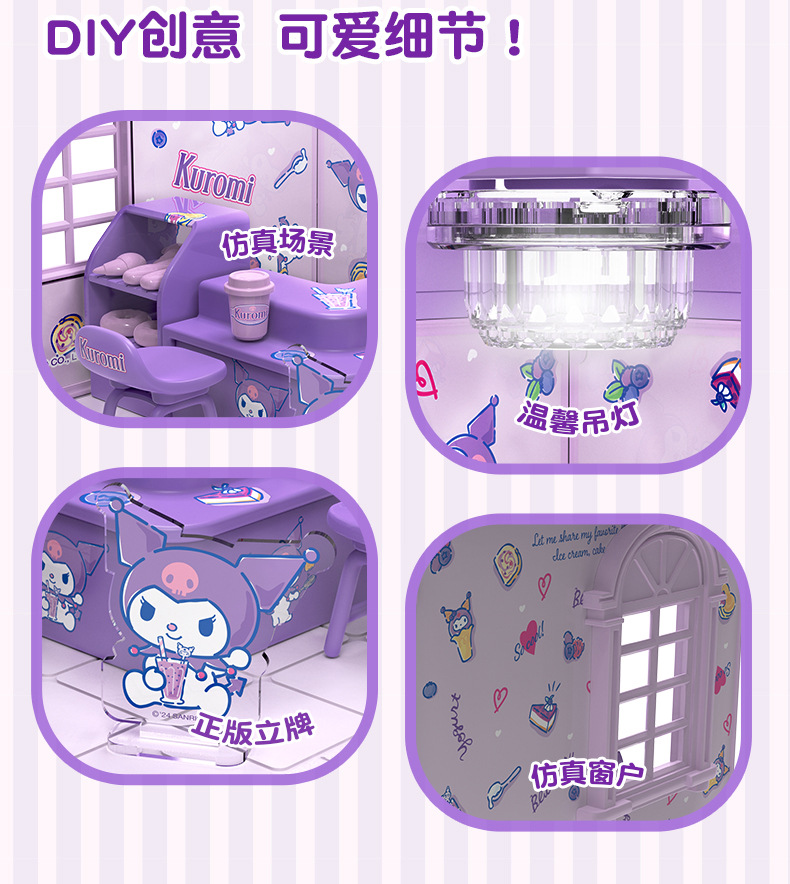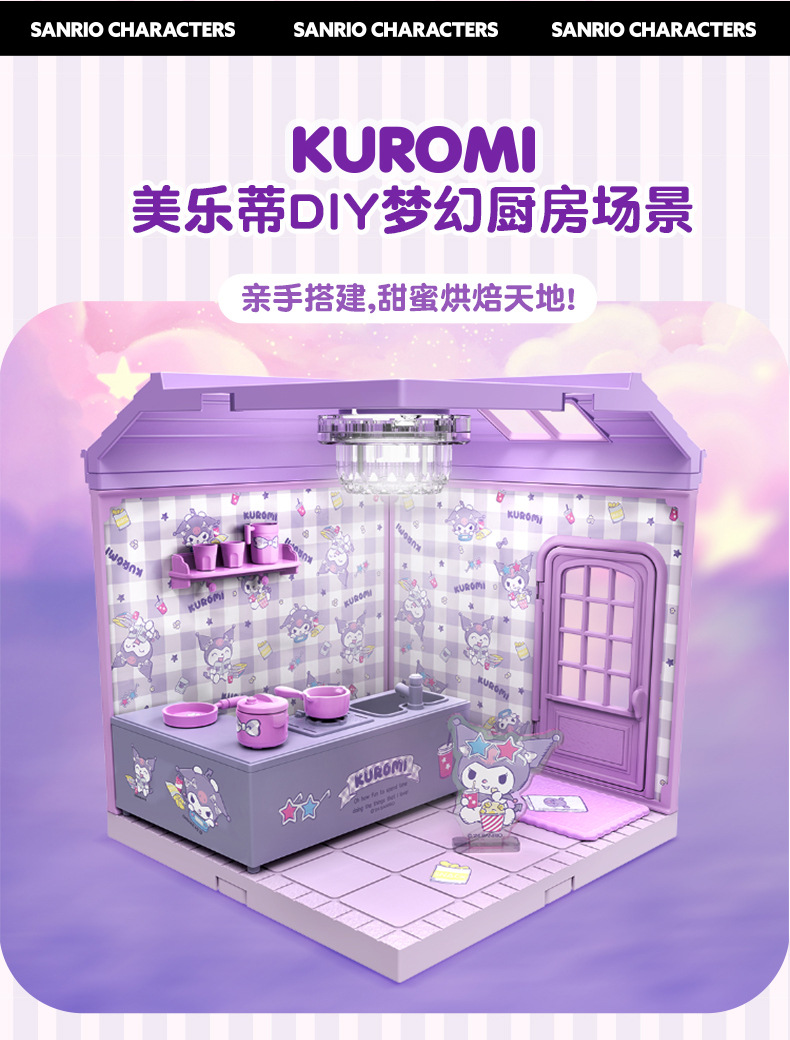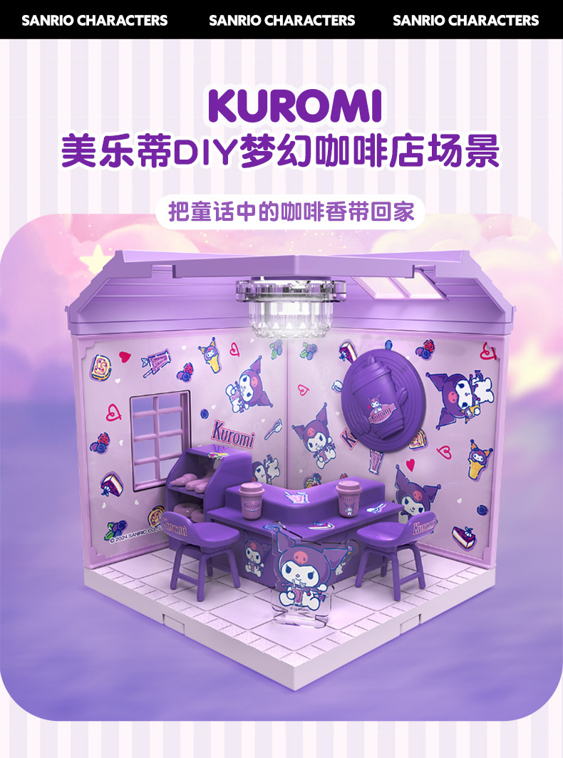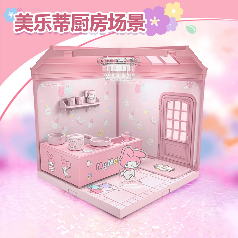 정품 Sanrio Kuromi Melody 놀이 집 장면 장식품 커피 욕실 침실 소녀 어린이 장난감스토어 가기