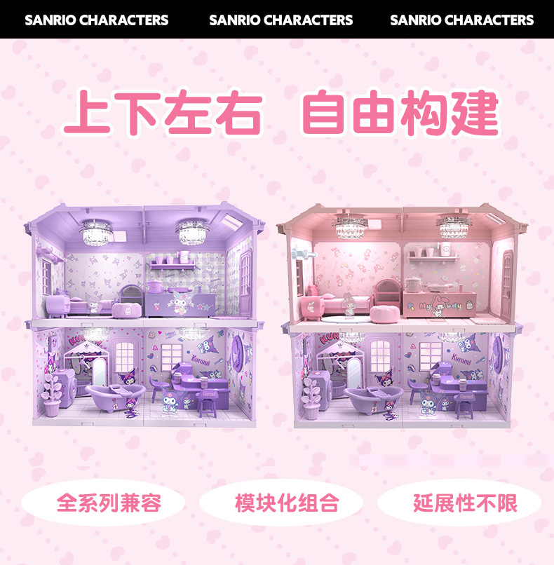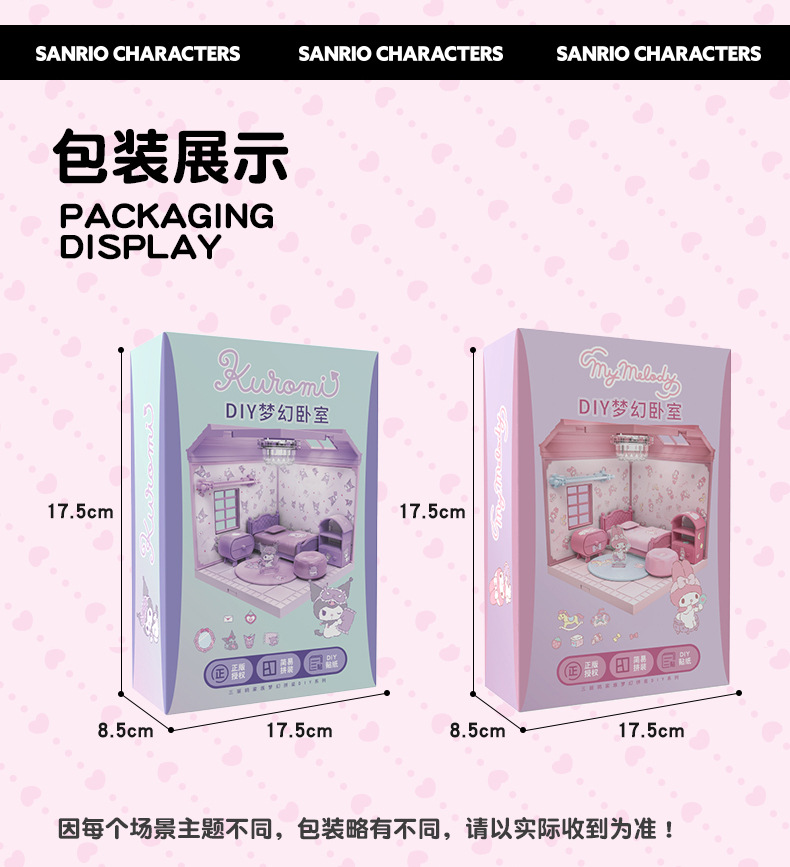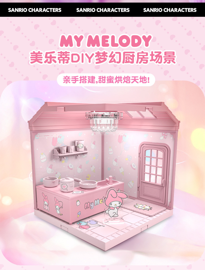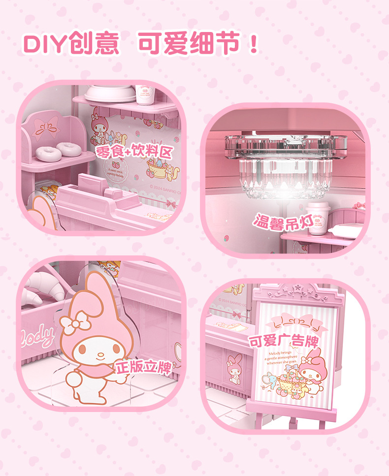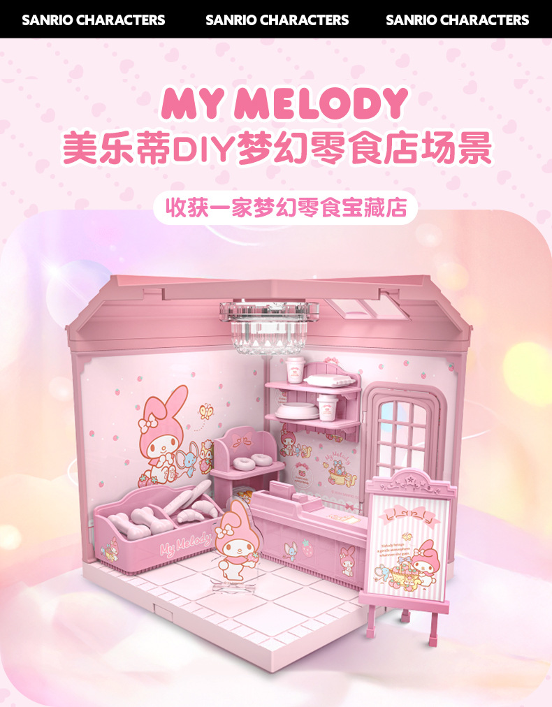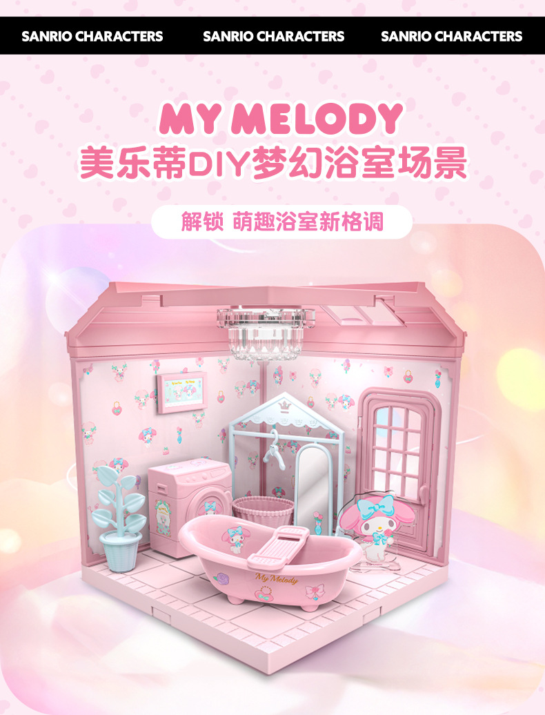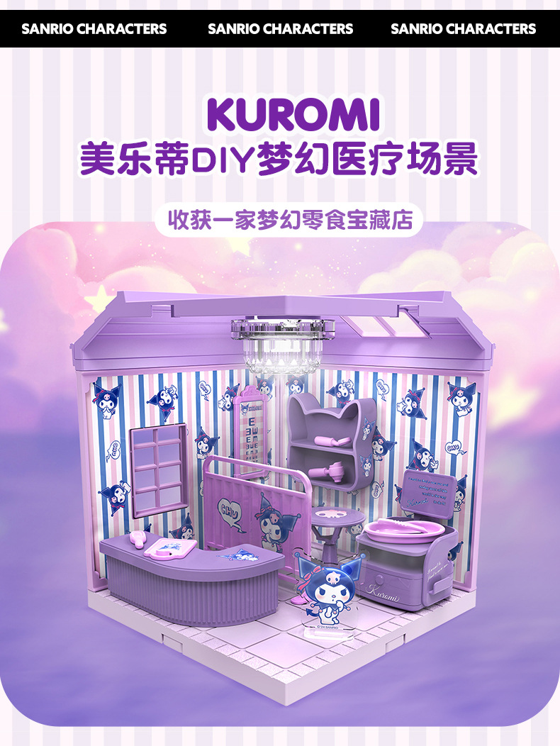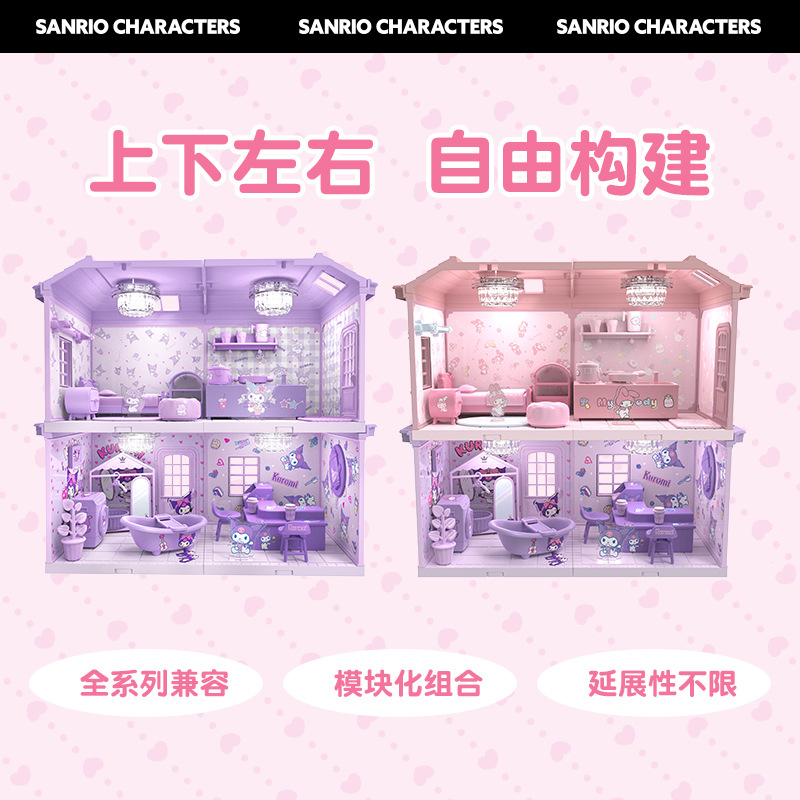 정품 Sanrio Kuromi Melody 놀이 집 장면 장식품 커피 욕실 침실 소녀 어린이 장난감스토어 가기