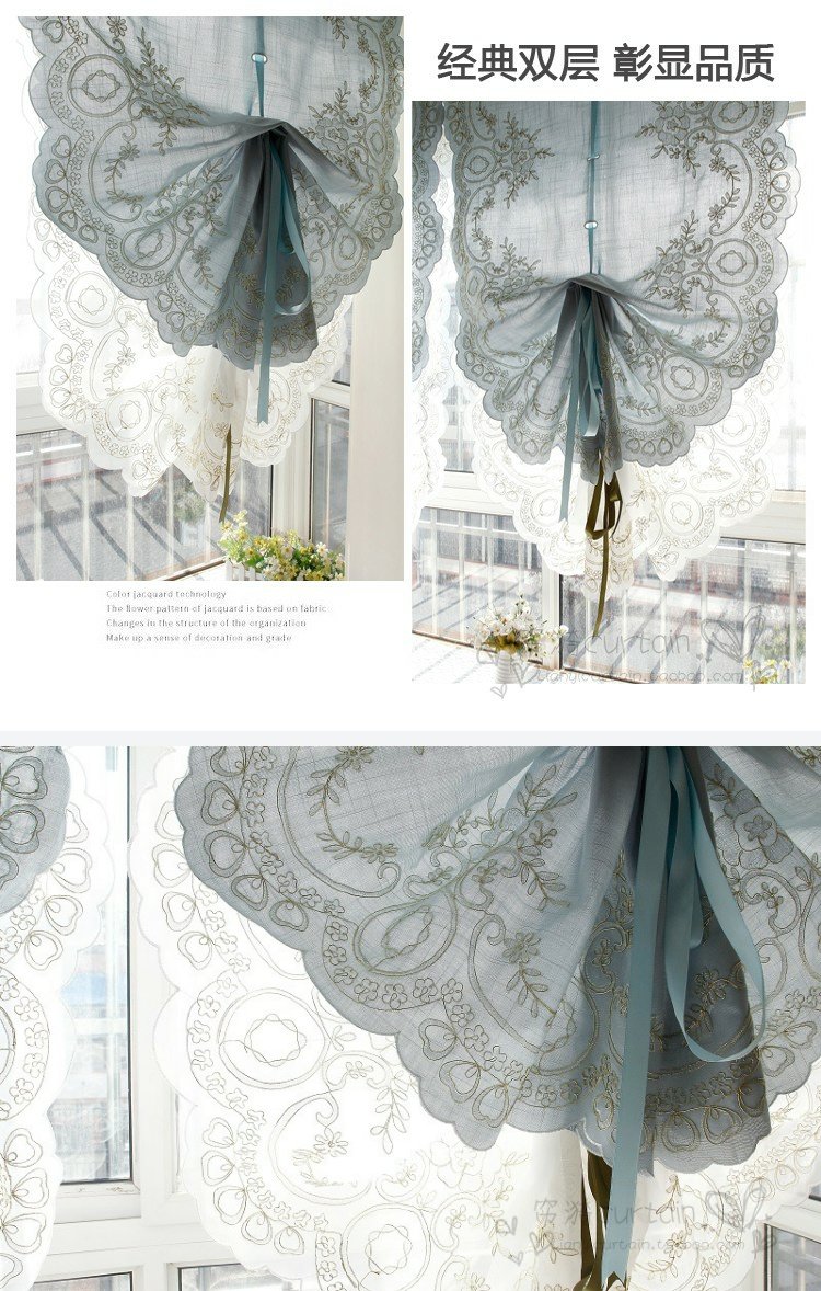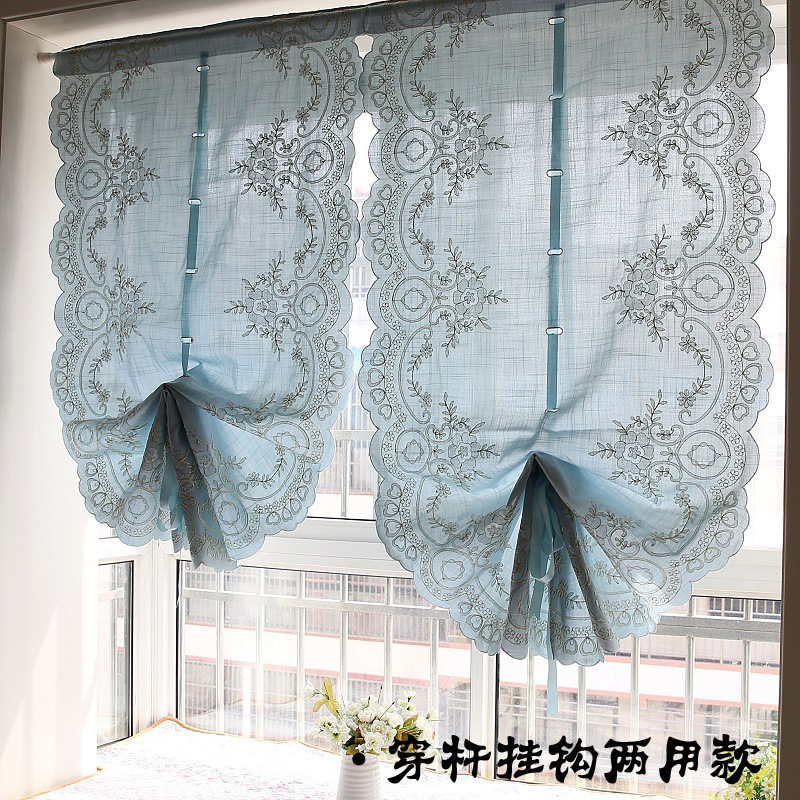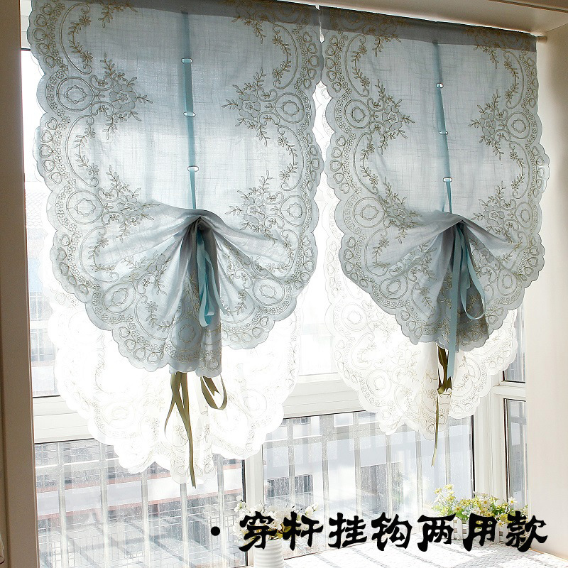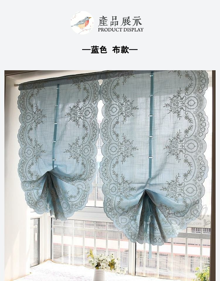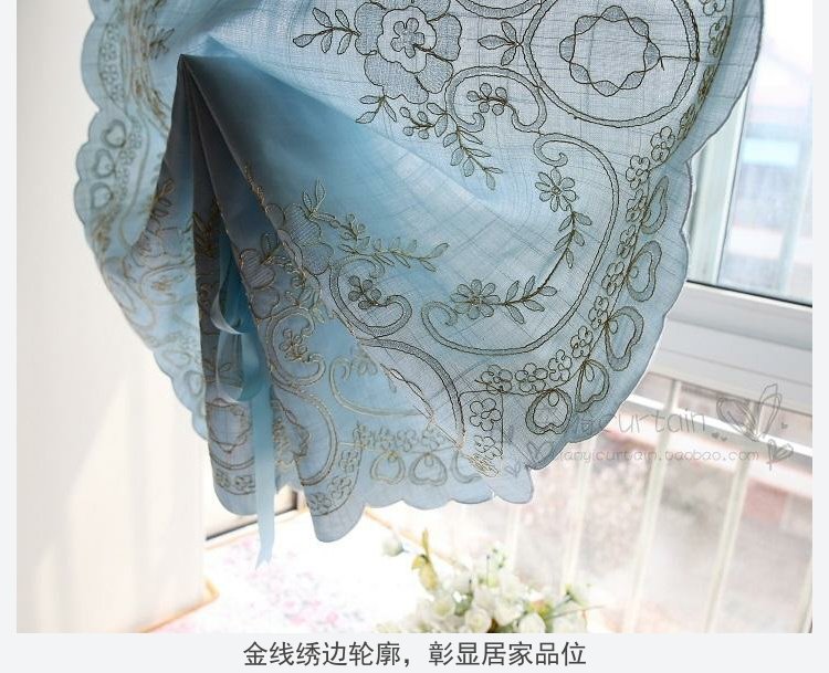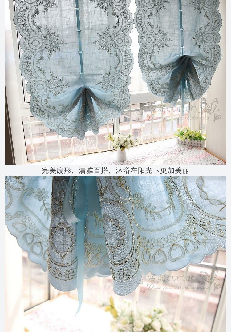 도매 블루 심플 유럽 및 미국 스타일 완성 풍선 블라인드 부채꼴 벨크로 펀치 프리 로마 커튼 도어 커튼스토어 가기