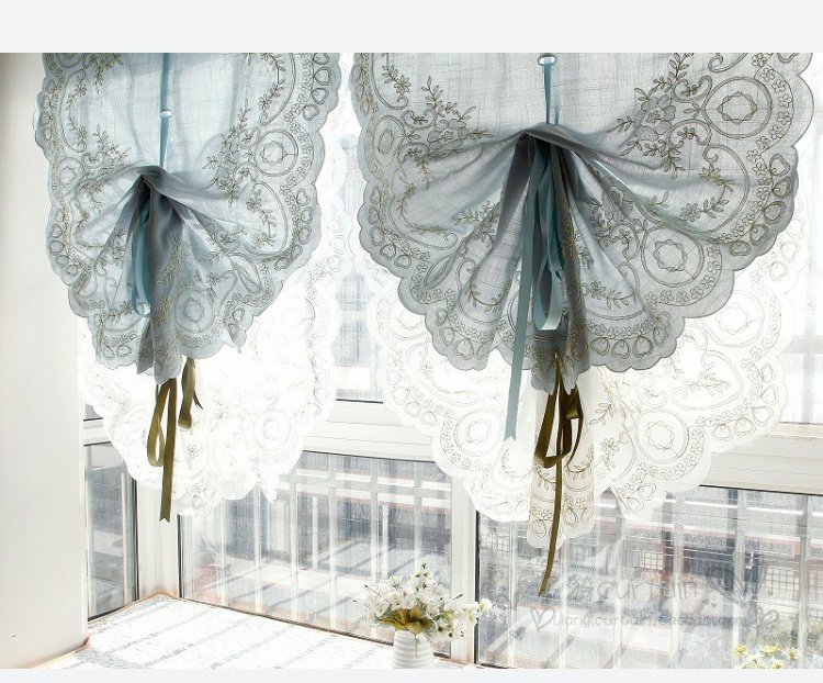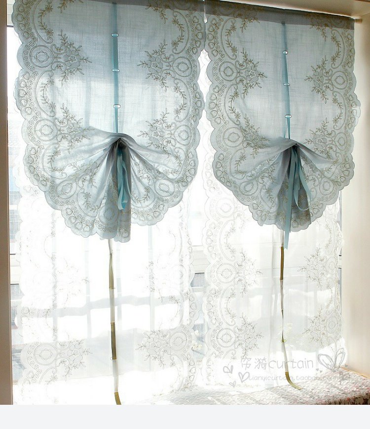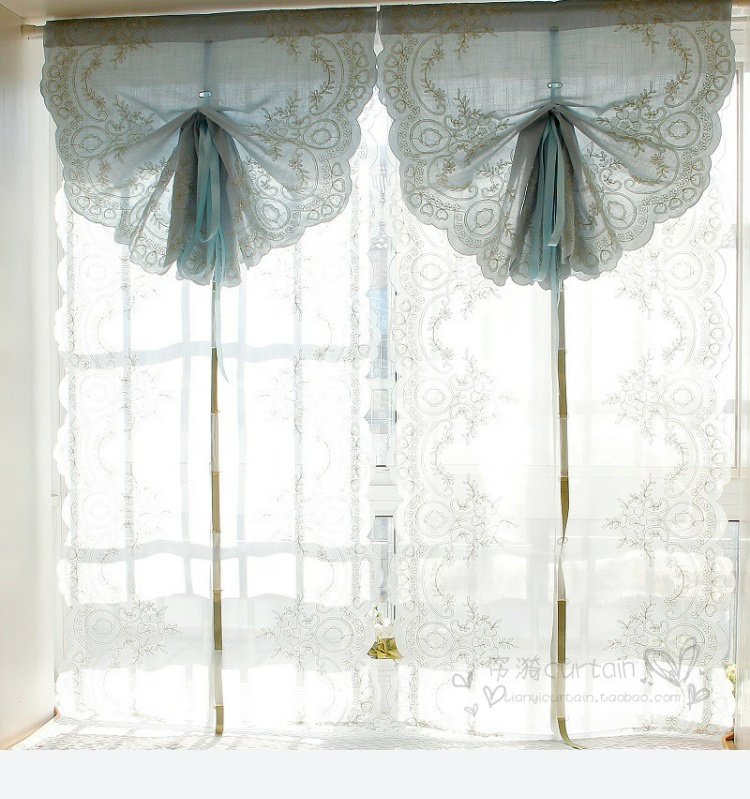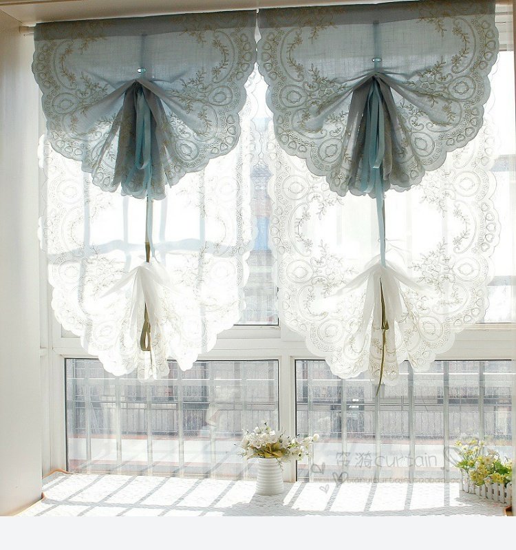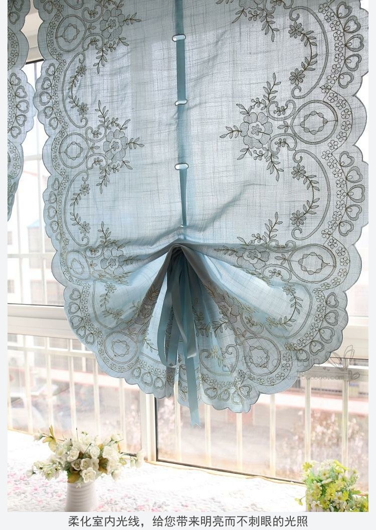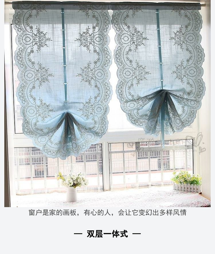 도매 블루 심플 유럽 및 미국 스타일 완성 풍선 블라인드 부채꼴 벨크로 펀치 프리 로마 커튼 도어 커튼스토어 가기