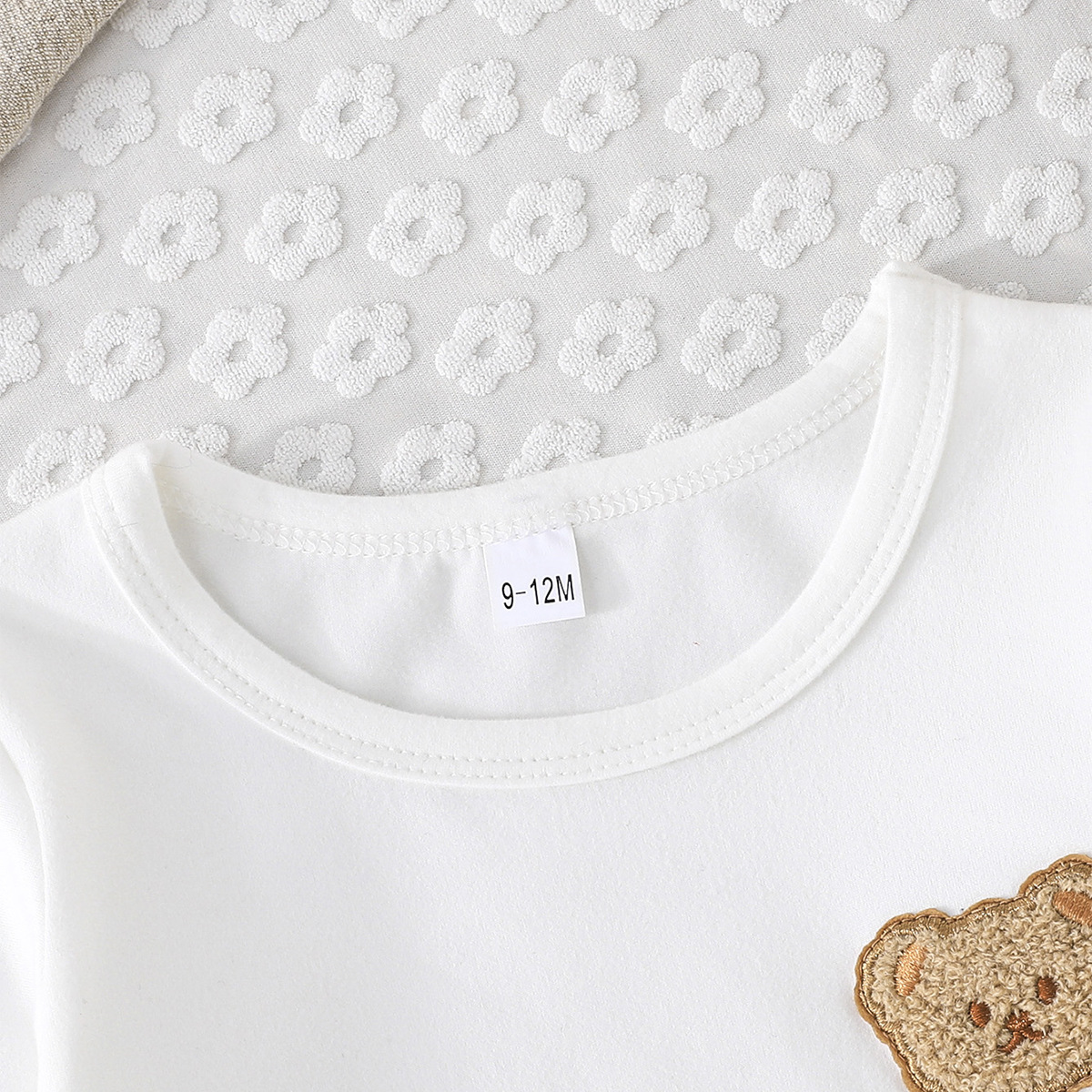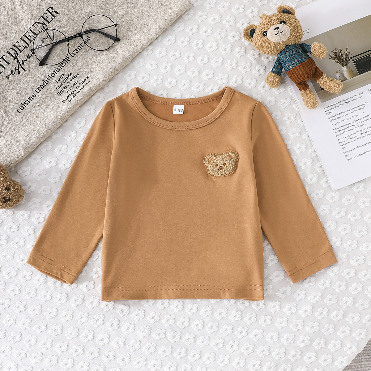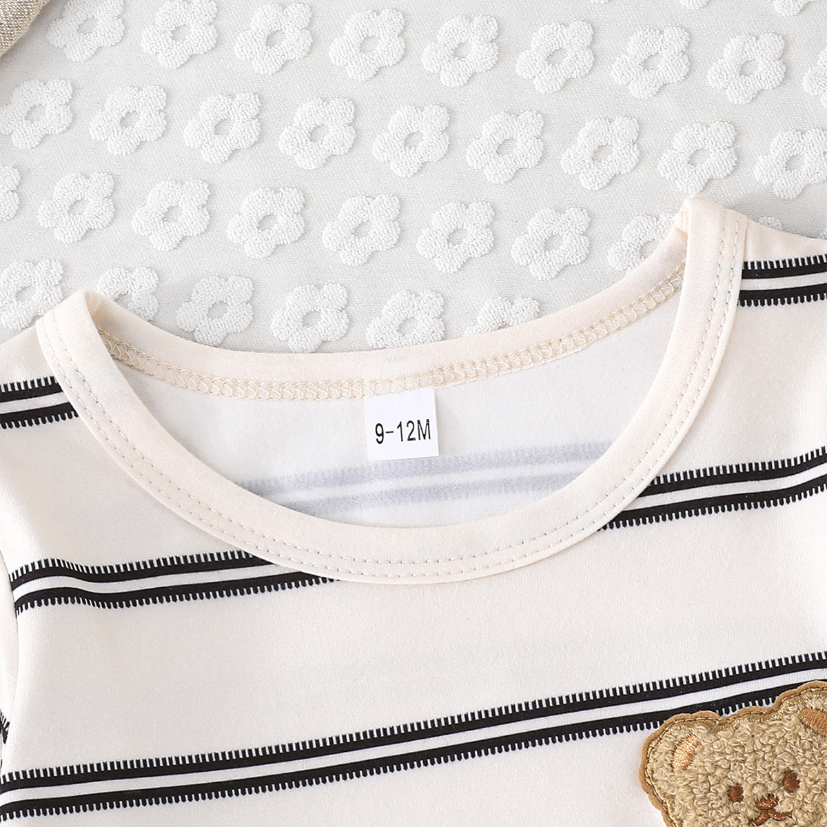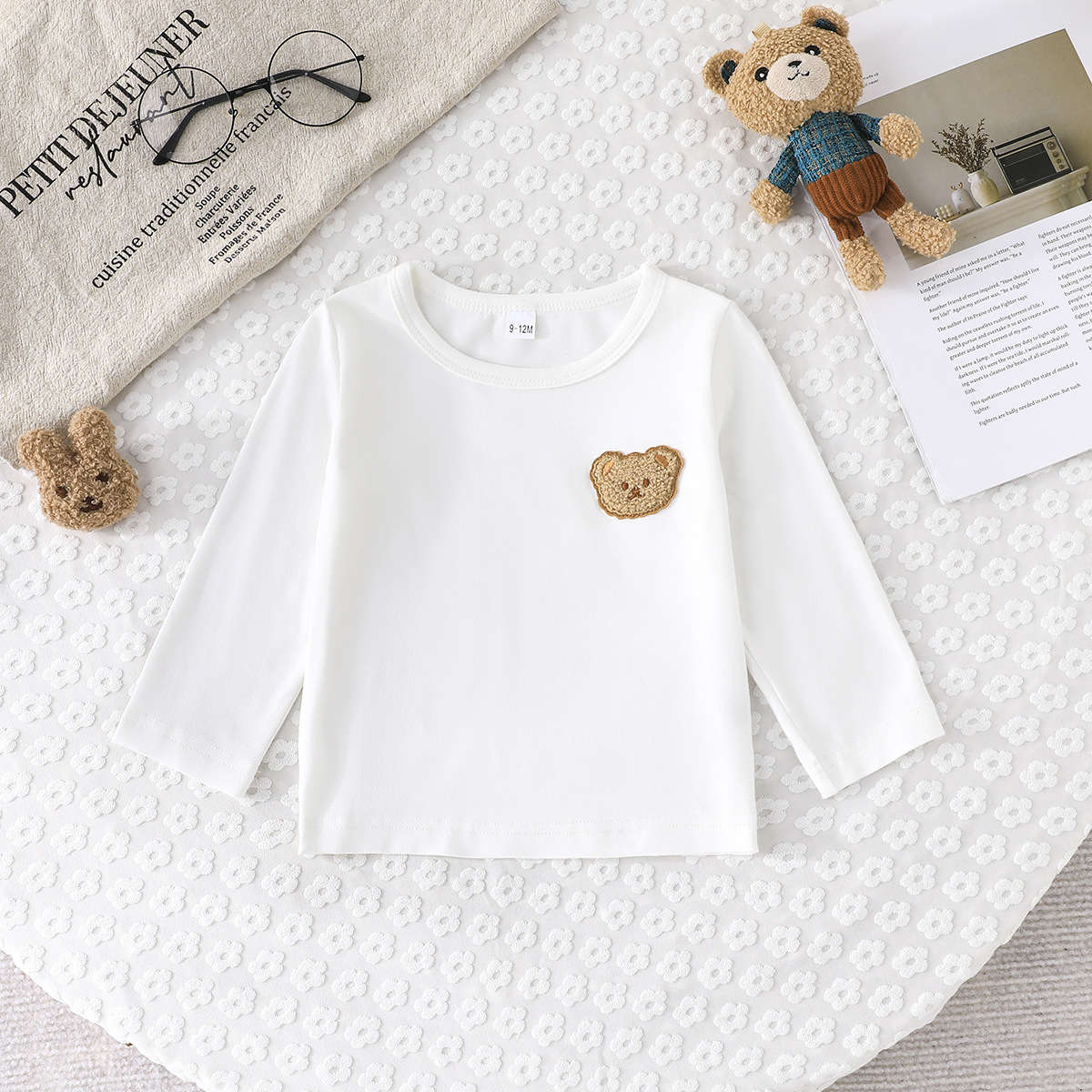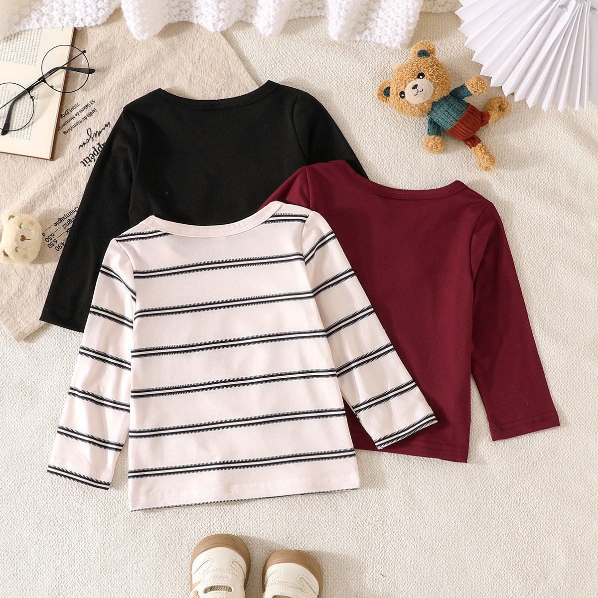 남아용 긴팔 라운드넥 티셔츠 3종 세트 고급 곰 자수 아동용 이너웨어 봄 가을 캐주얼 스트라이프 3종 세트