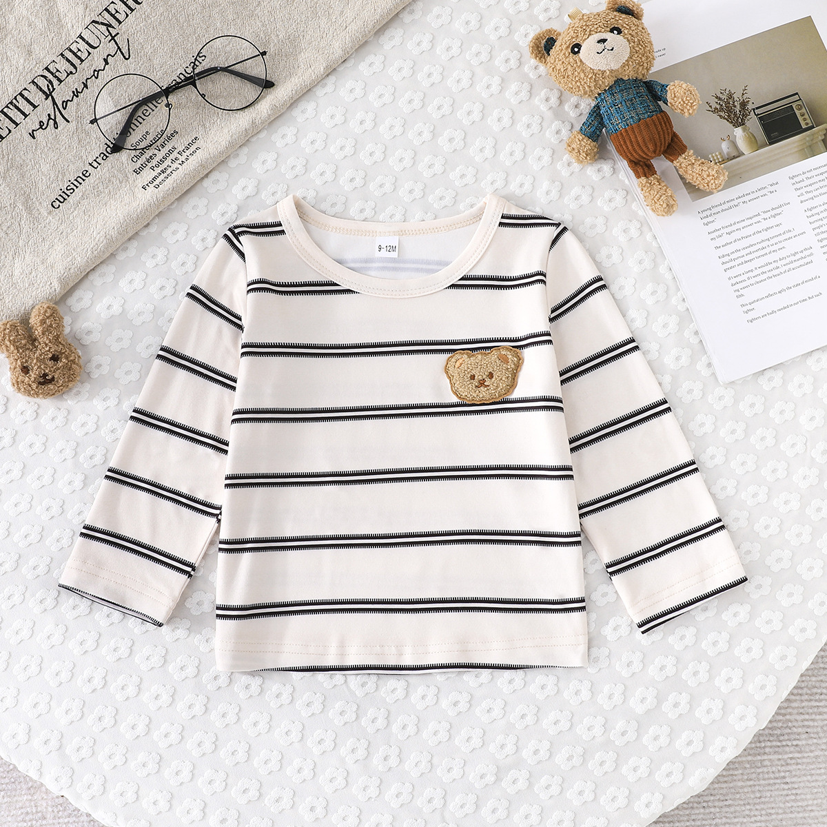 남아용 긴팔 라운드넥 티셔츠 3종 세트 고급 곰 자수 아동용 이너웨어 봄 가을 캐주얼 스트라이프 3종 세트스토어 가기