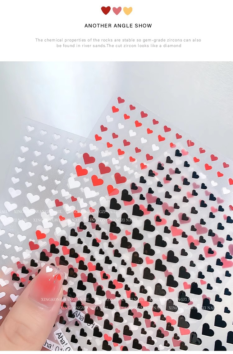 인터넷 축하 사랑 네일 아트 스티커 프랑스 소녀 크기 하트 모양 골드와 실버 미니 흑백 하트 네일 데칼