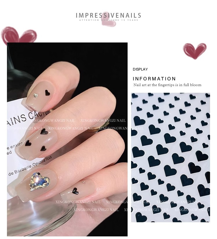 인터넷 축하 사랑 네일 아트 스티커 프랑스 소녀 크기 하트 모양 골드와 실버 미니 흑백 하트 네일 데칼스토어 가기