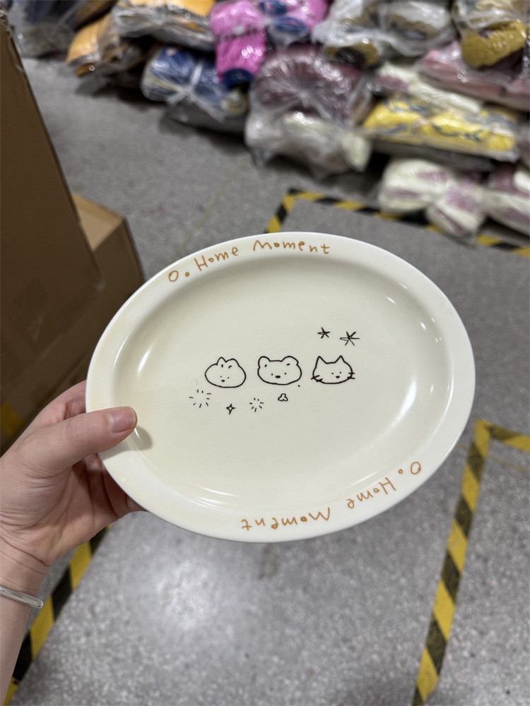 재고 인치 귀여운 그림 작은 동물 디저트 플레이트 세라믹 타원형 플레이트 과일 플레이트 한국 디저트 샐러드 플레이트