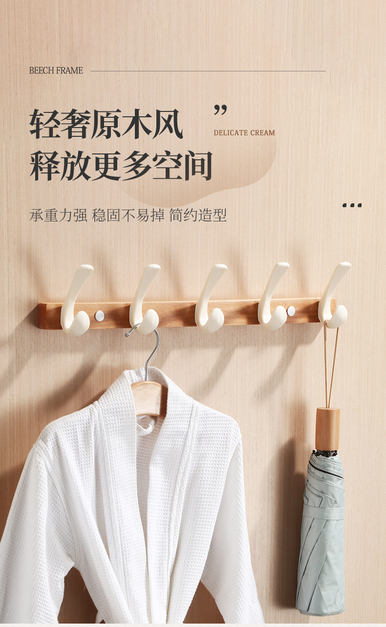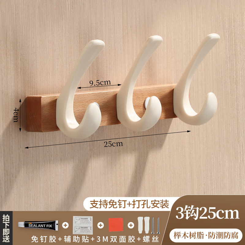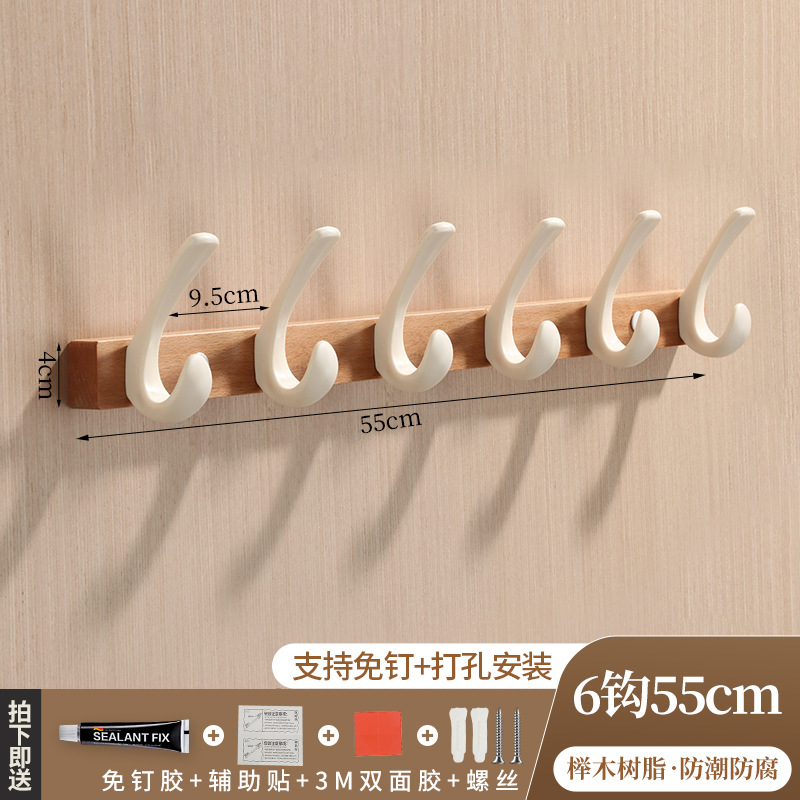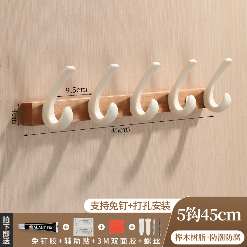 로그 스타일 욕실 코트 후크 구멍이 뚫린 너도밤 나무 줄 입구 보관 선반 화장실 문 후크스토어 가기