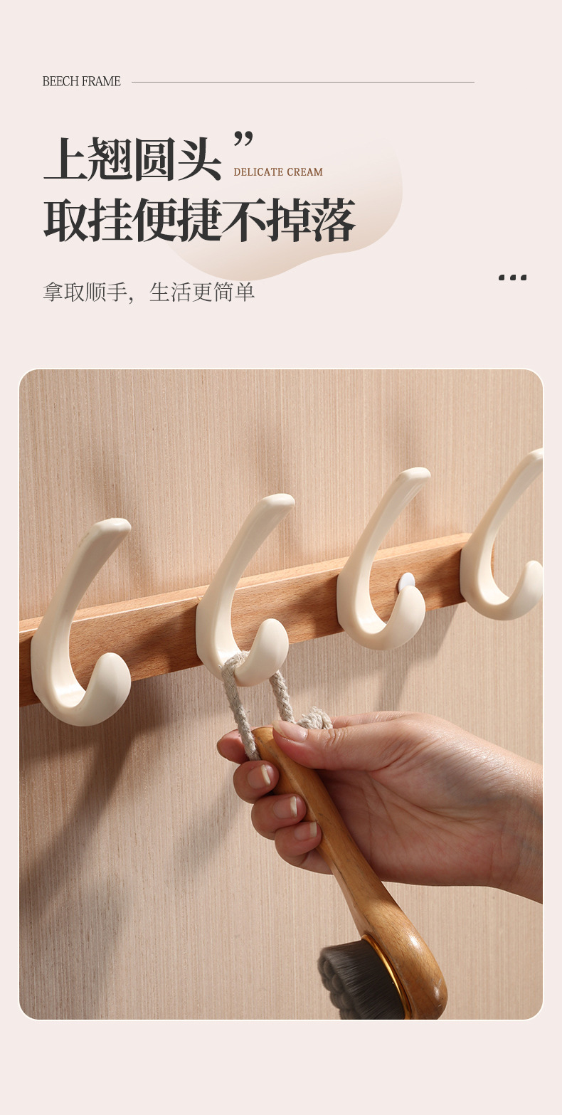 로그 스타일 욕실 코트 후크 구멍이 뚫린 너도밤 나무 줄 입구 보관 선반 화장실 문 후크