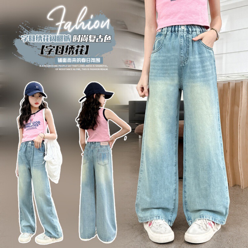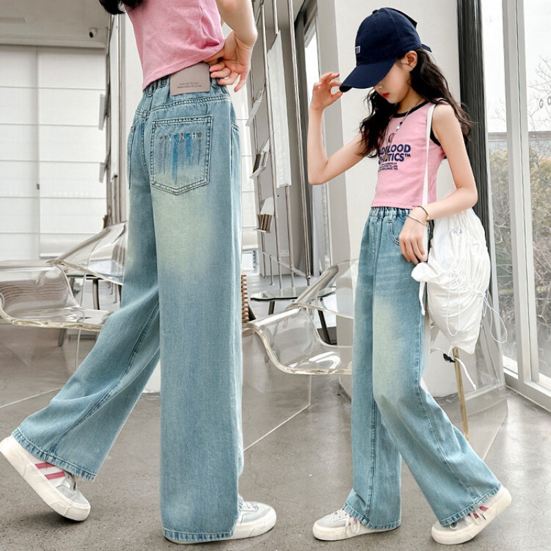 Zhongda 여아 텐셀 청바지 여름 얇은 2025 새로운 와이드 팬츠 서양식 슬리밍 바지스토어 가기