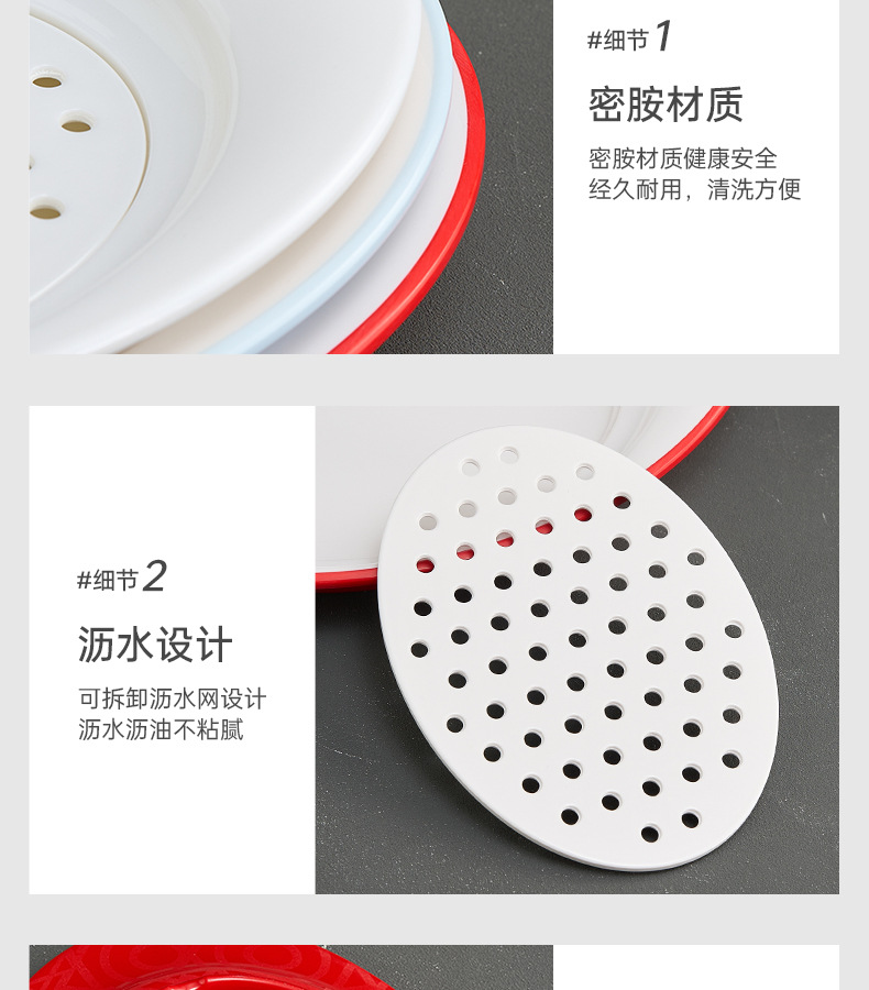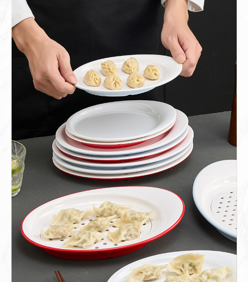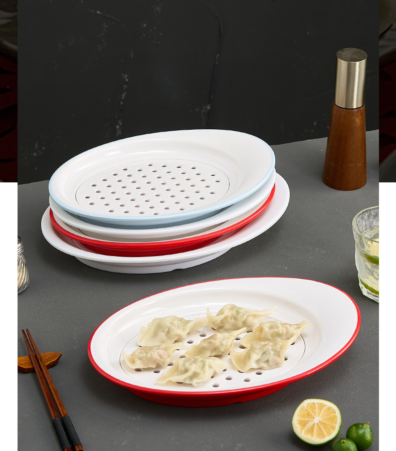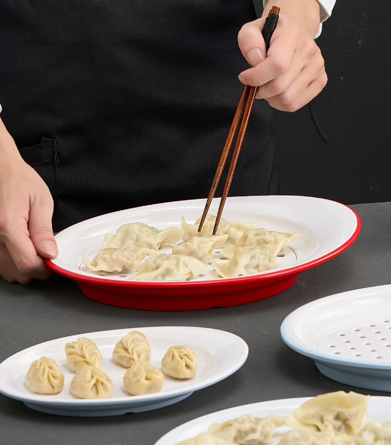 멜라민 만두 접시, 모조 도자기 배수 접시, 체인 매장 특별 이중층 만두 및 건조 만두 접시, 상업용스토어 가기