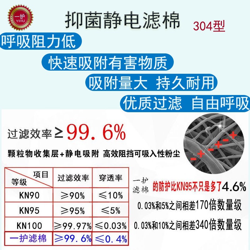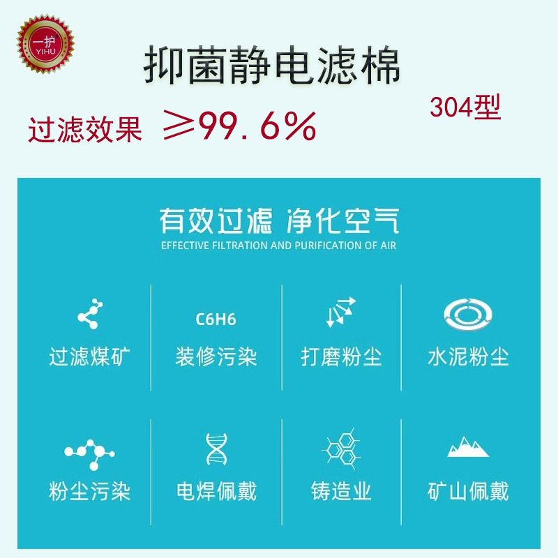 Yihu 항균 정전기 필터면 활성탄 정화 304 유형 두꺼운 kn95 산업용 방진 방진 통기성스토어 가기