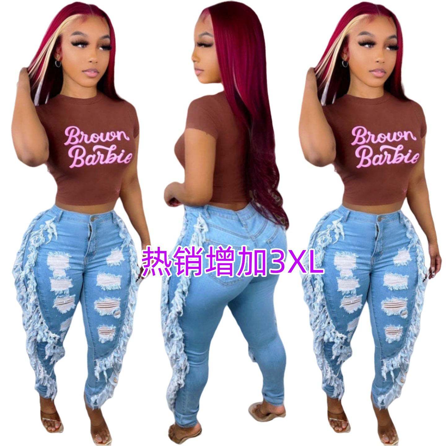 A3303 아마존 크로스보더 새로운 유럽과 미국 의류 찢어진 패션 술 섹시 슬림핏 청바지